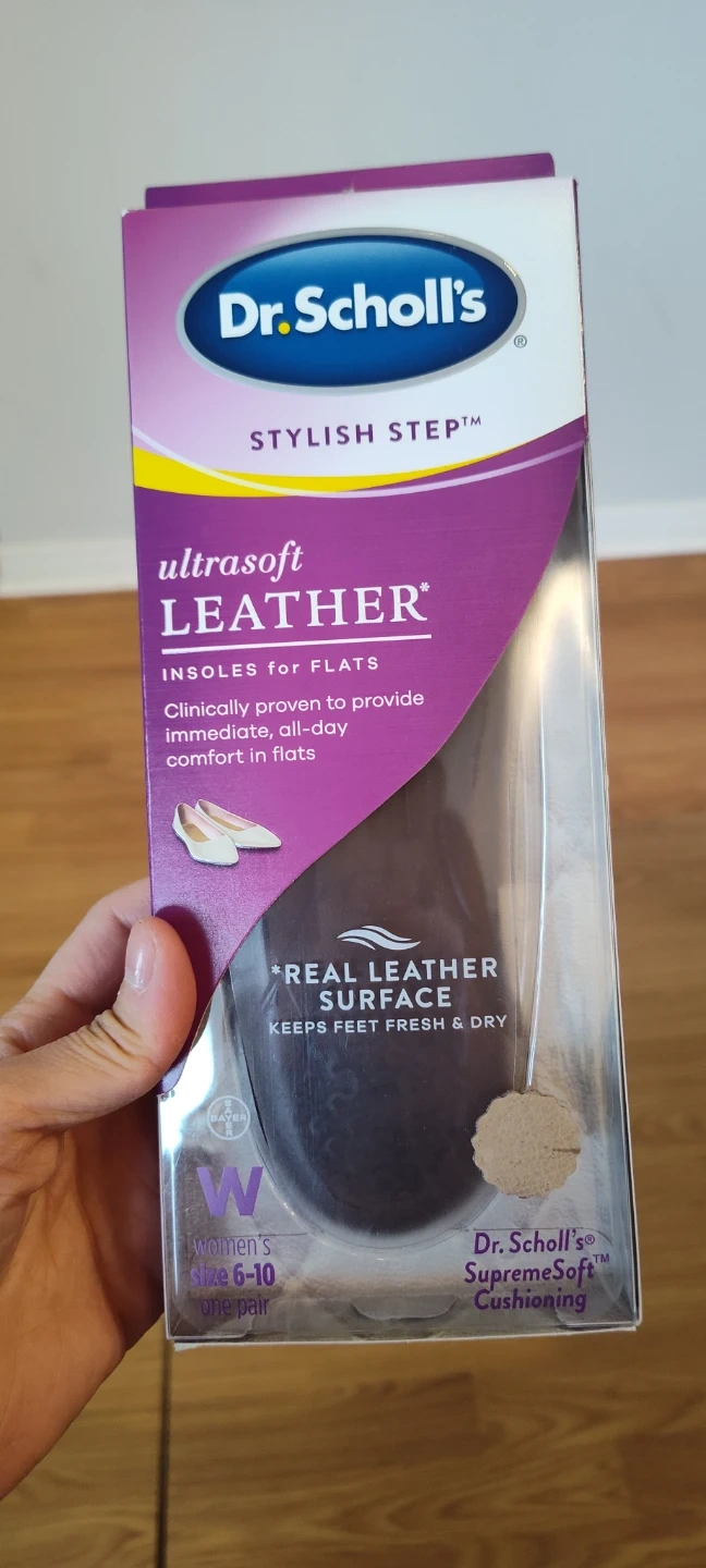 These Dr. Scholl's insoles are made with ultrasoft leather and feature real leather surface that keeps feet fresh and dry. They provide immediate, all-day comfort in flats and fit comfortably in boots and low heels. Includes Dr. Scholl's SupremeSoft cushioning for superior comfort and support.