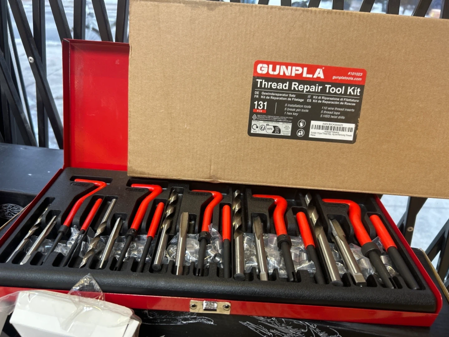 Selling a GUNPLA Thread Repair Tool Kit with 131 pieces! This kit includes 5 installation tools, 5 break pin tools, 1 hex key, 110 wire thread inserts, 5 thread taps, and 5 HSS twist drills. The kit comes in its original box.