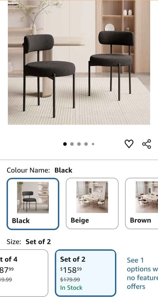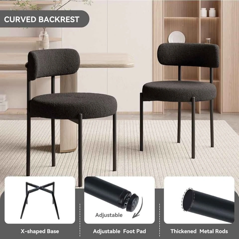 Stylish black teddy fabric chairs, set of 2. Super comfy with high-density sponge. Has sturdy black metal legs. Approximate dimensions: 29.3" total height, seat height 19", seat 20.3" wide x 17.5" deep. Backrest is 10.3" high. Can hold up to 300 LBS. In original box. Original price $181 including tax.