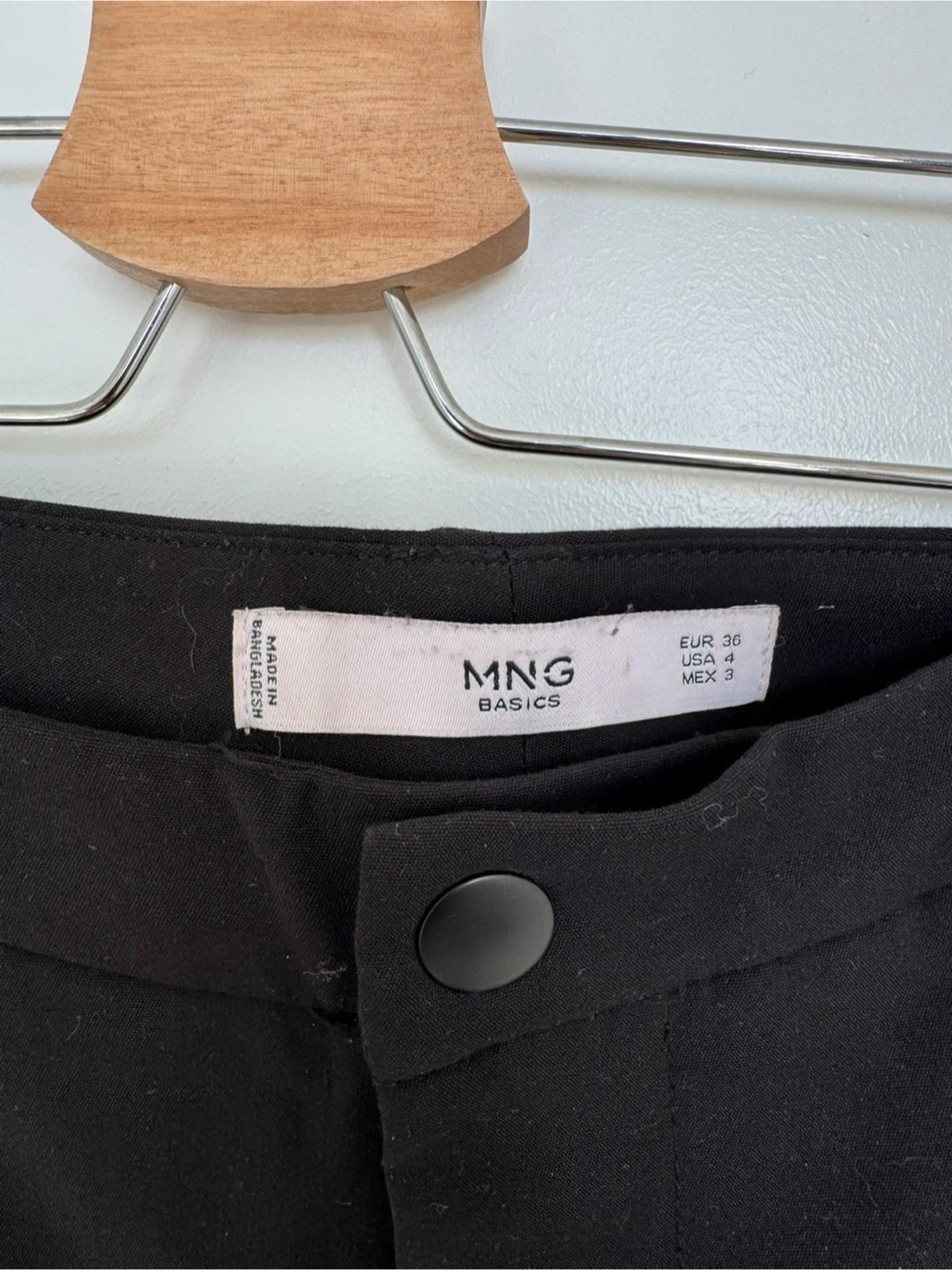 Black trousers from mango Basics. These pants are cropped and feature a classic button and zip closure. Above ankle length