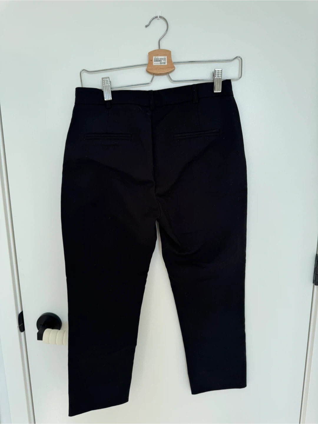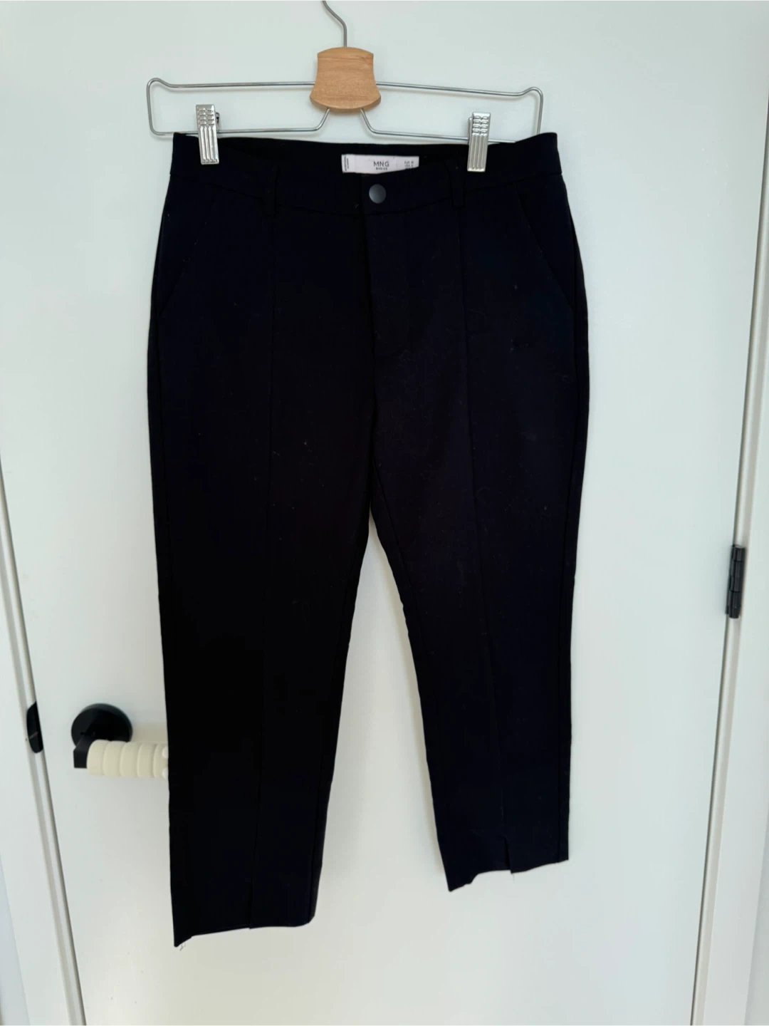 Black trousers from mango Basics. These pants are cropped and feature a classic button and zip closure. Above ankle length