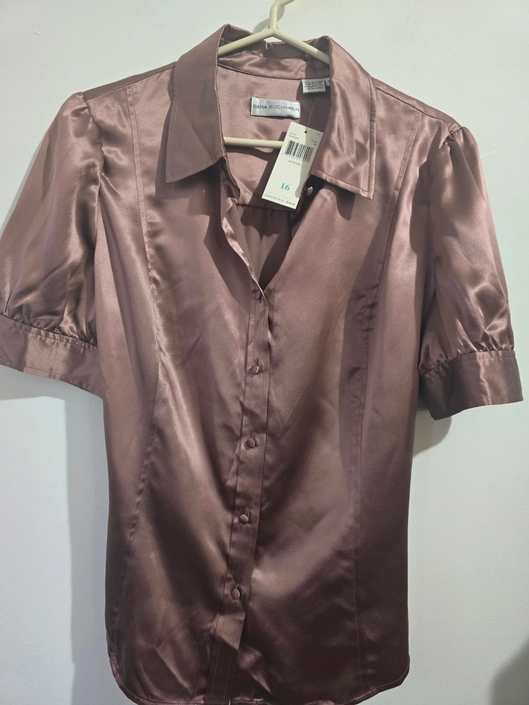 Dana Buchman Women's Satin Puff Sleeve Blouse - Size 16