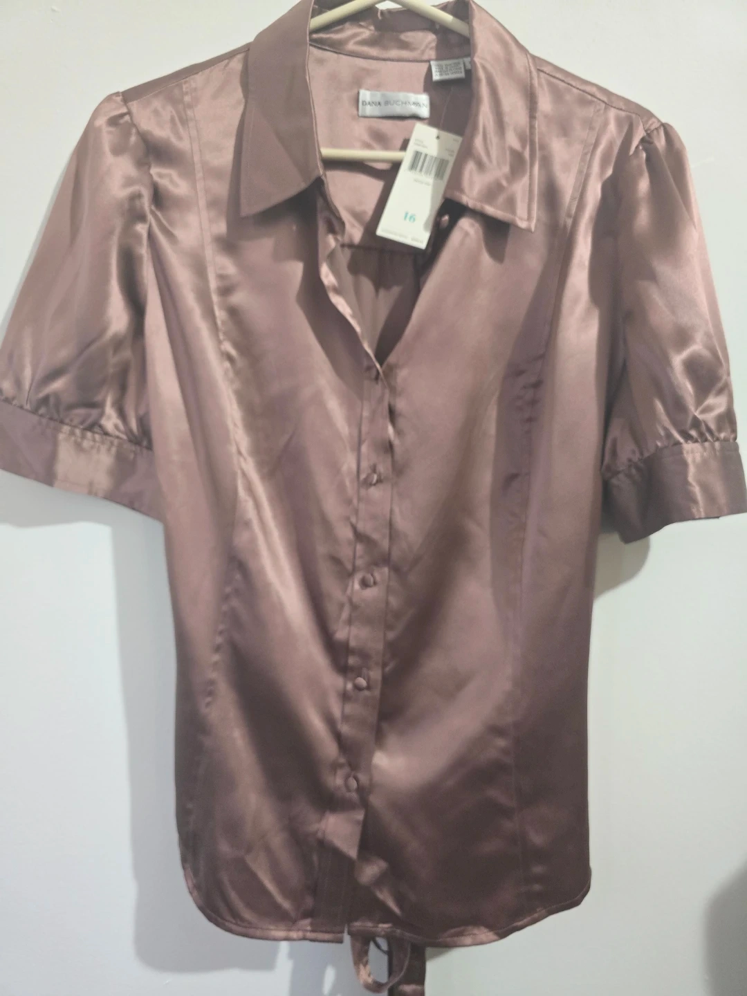 Dana Buchman Women's Satin Puff Sleeve Blouse - Size 16