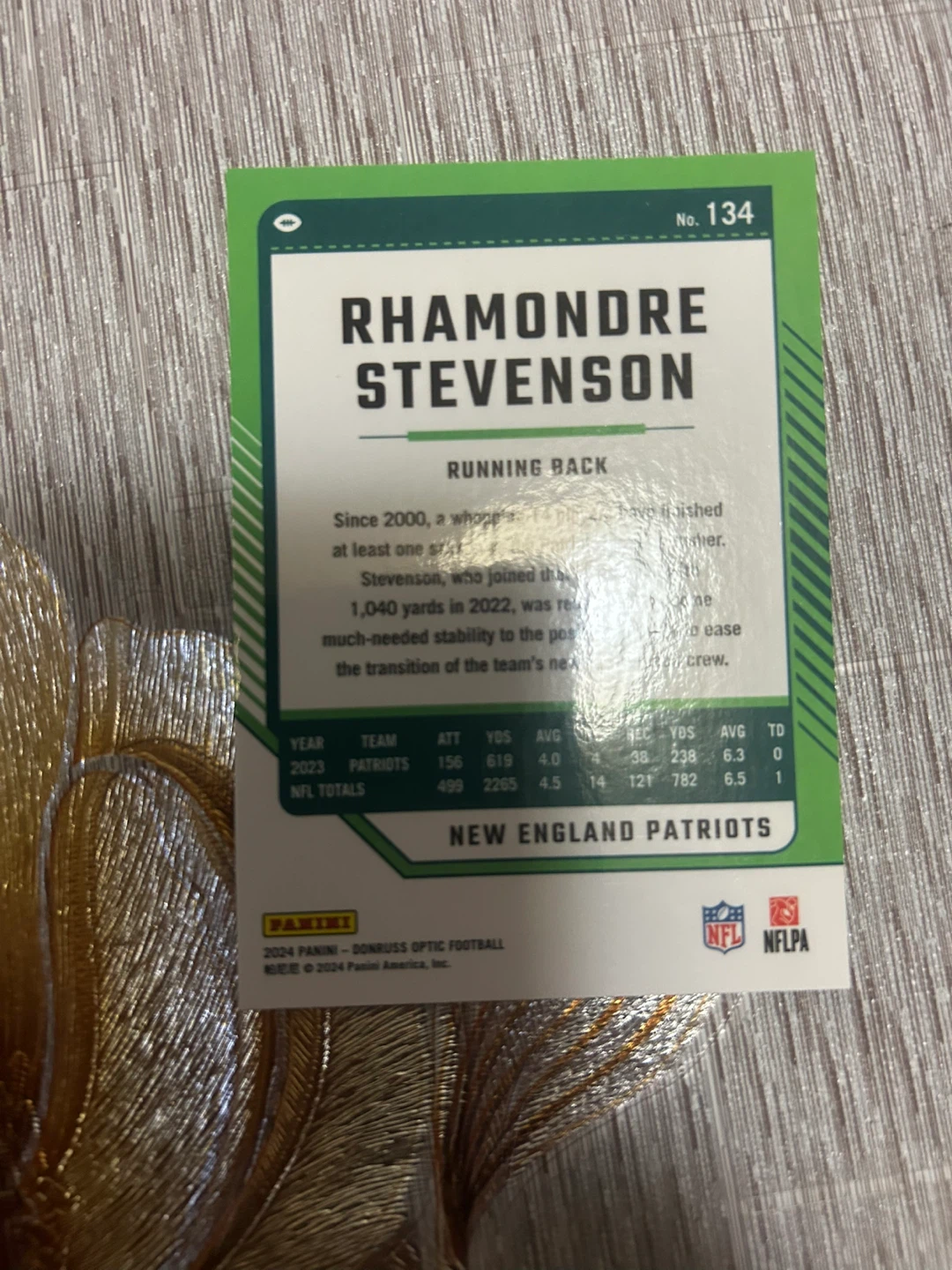 Selling a Rhamondre Stevenson trading card. It's from the New England Patriots. Great for any football fan!