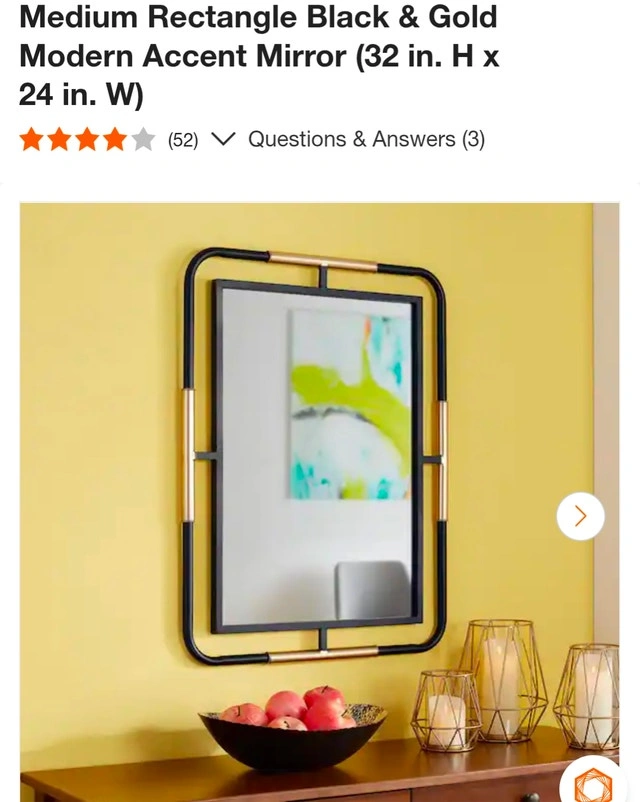 Brand new mirror, still sealed in the original packaging. Add a touch of modern elegance to your home with this medium rectangle accent mirror, featuring a sleek black and gold frame with dimensions of 32 inches in height and 24 inches in width. If you are reading this, the mirror is still available! Cash accepted.