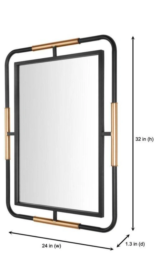 Brand new mirror, still sealed in the original packaging. Add a touch of modern elegance to your home with this medium rectangle accent mirror, featuring a sleek black and gold frame with dimensions of 32 inches in height and 24 inches in width. If you are reading this, the mirror is still available! Cash accepted.
