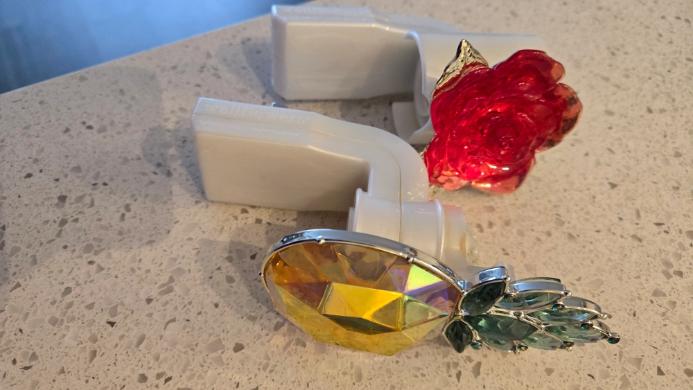 Pair of plug-in wallflowers. One features a red rose design, the other a pineapple. Both are in very good condition. Ideal for adding fragrance to your home.