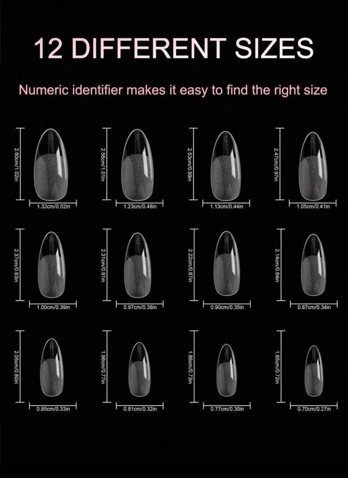 120pcs Box/12 Sizes Short Almond Shape Half Matte Semi-Transparent False Nails, Suitable For Home And Beauty Salon Manicure, DIY Nail Art Sticker Design