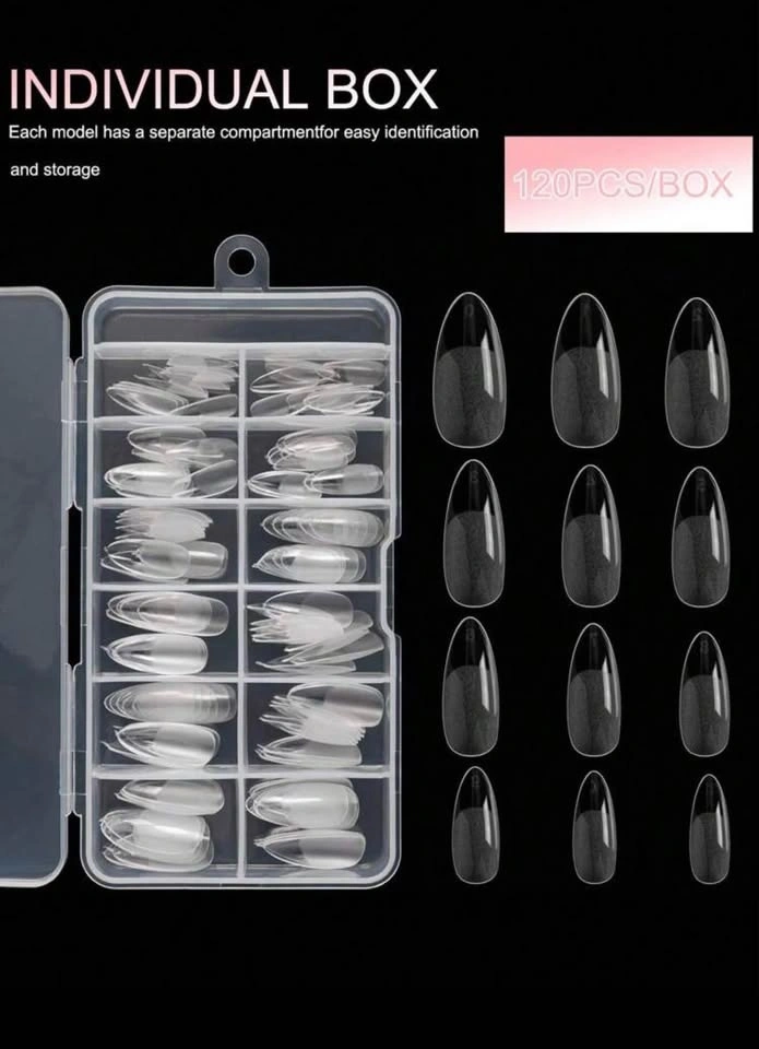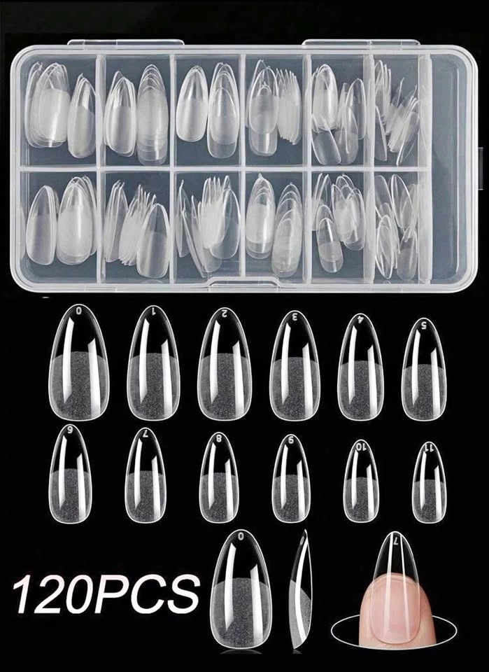 120pcs Box/12 Sizes Short Almond Shape Half Matte Semi-Transparent False Nails, Suitable For Home And Beauty Salon Manicure, DIY Nail Art Sticker Design