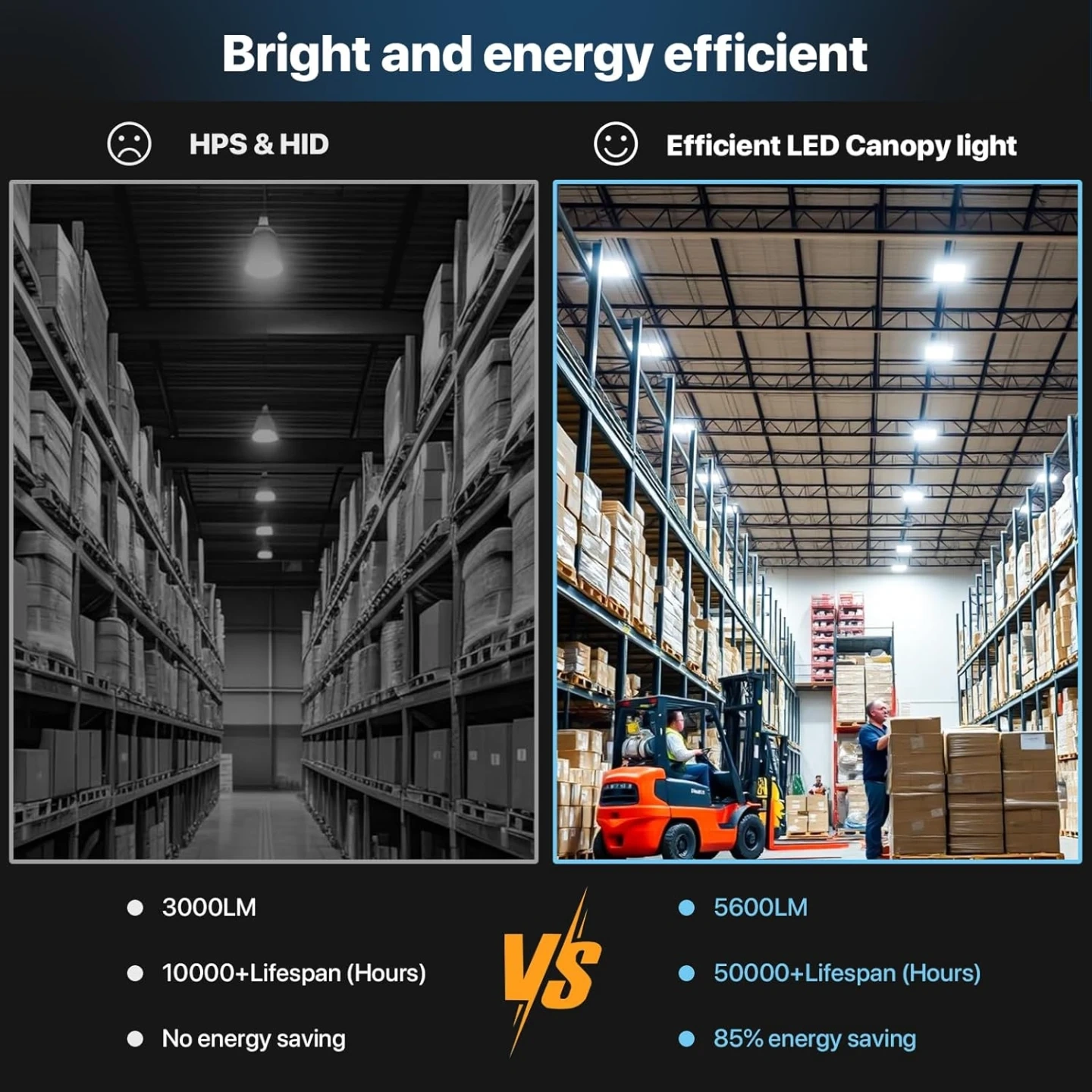 Cut Your Lighting Bill: Super-bright output of 5600 lumens with high 140 lm/W efficiency. Consuming only 40w, it directly replaces traditional MH/HID lights and slashes electricity costs by up to 85%.