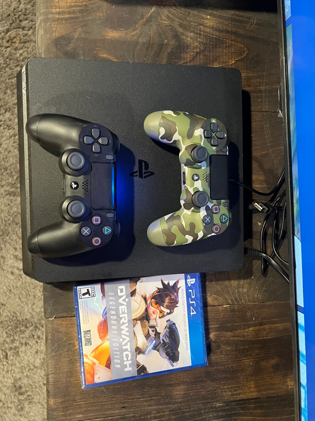 Buy & SellPS4 Console with Two Controllers and Overwatch GamePS4 Console with Two Controllers and Overwatch Game$250PlayStation 4 console, two DualShock 4 controllers (one black, one camouflage), and Overwatch: Legendary Edition game. Ready to play!ConditionLike newWHERE TO MEETPrince and MatchettView MapSELLERverifiedJennSandwich600 reviews0 chats·0 favorites·10 viewsSEND CHAT TO SELLERHi Jenn! I’m interested in your listing.Hi Jenn! I’m interested in your listing.Get the Karrot app to chatSign In to chat