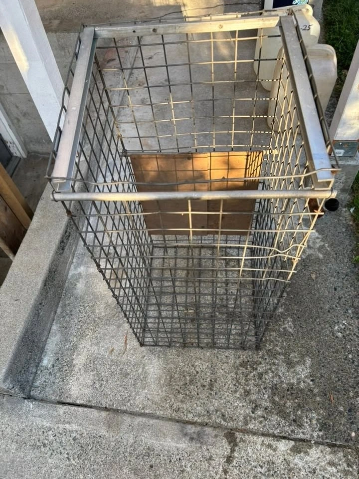 This is a classic and reliable metal pet cage, with a trap and rolling wooden door.
