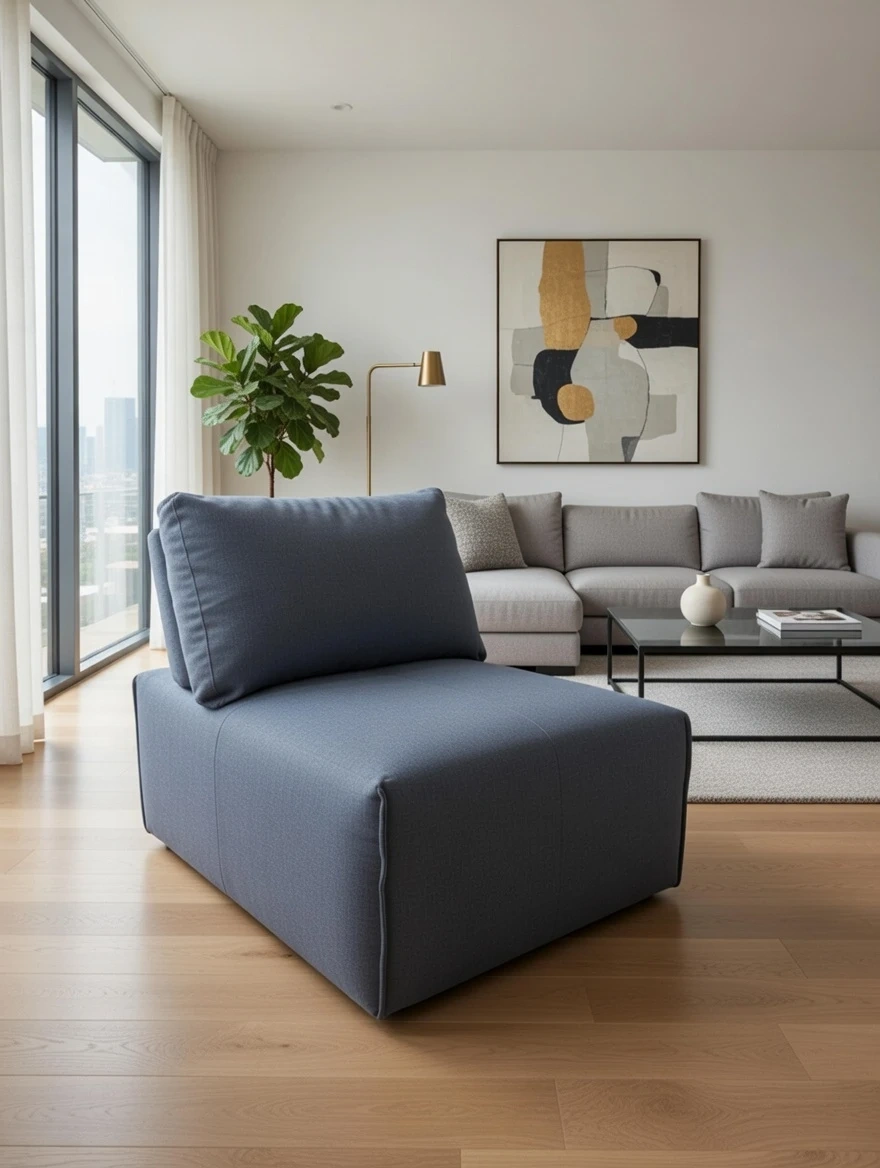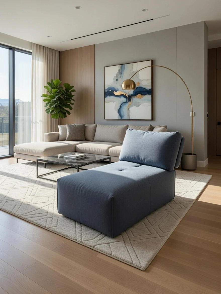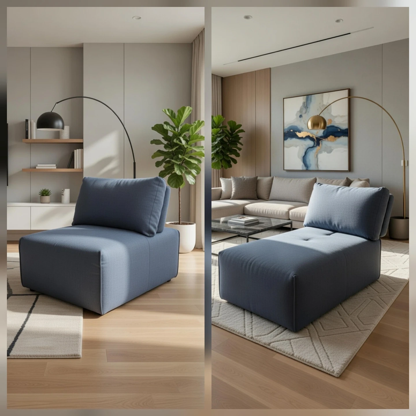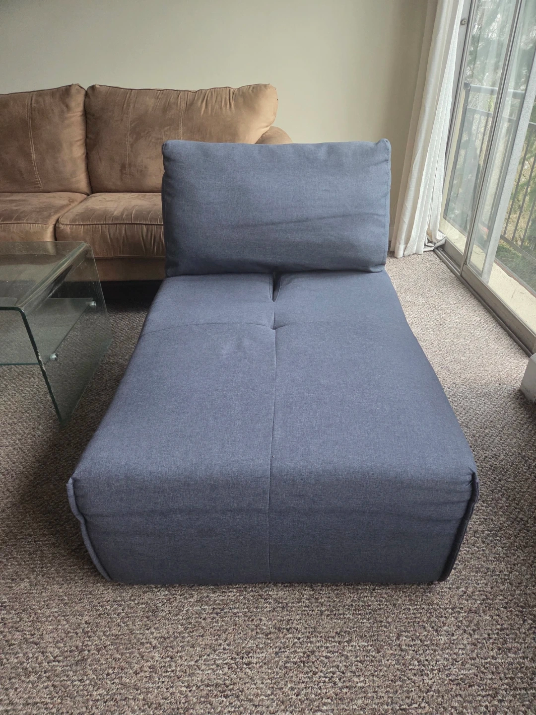 Moe's Home Collection blue convertible chaise lounge chairs with an adjustable backrest.