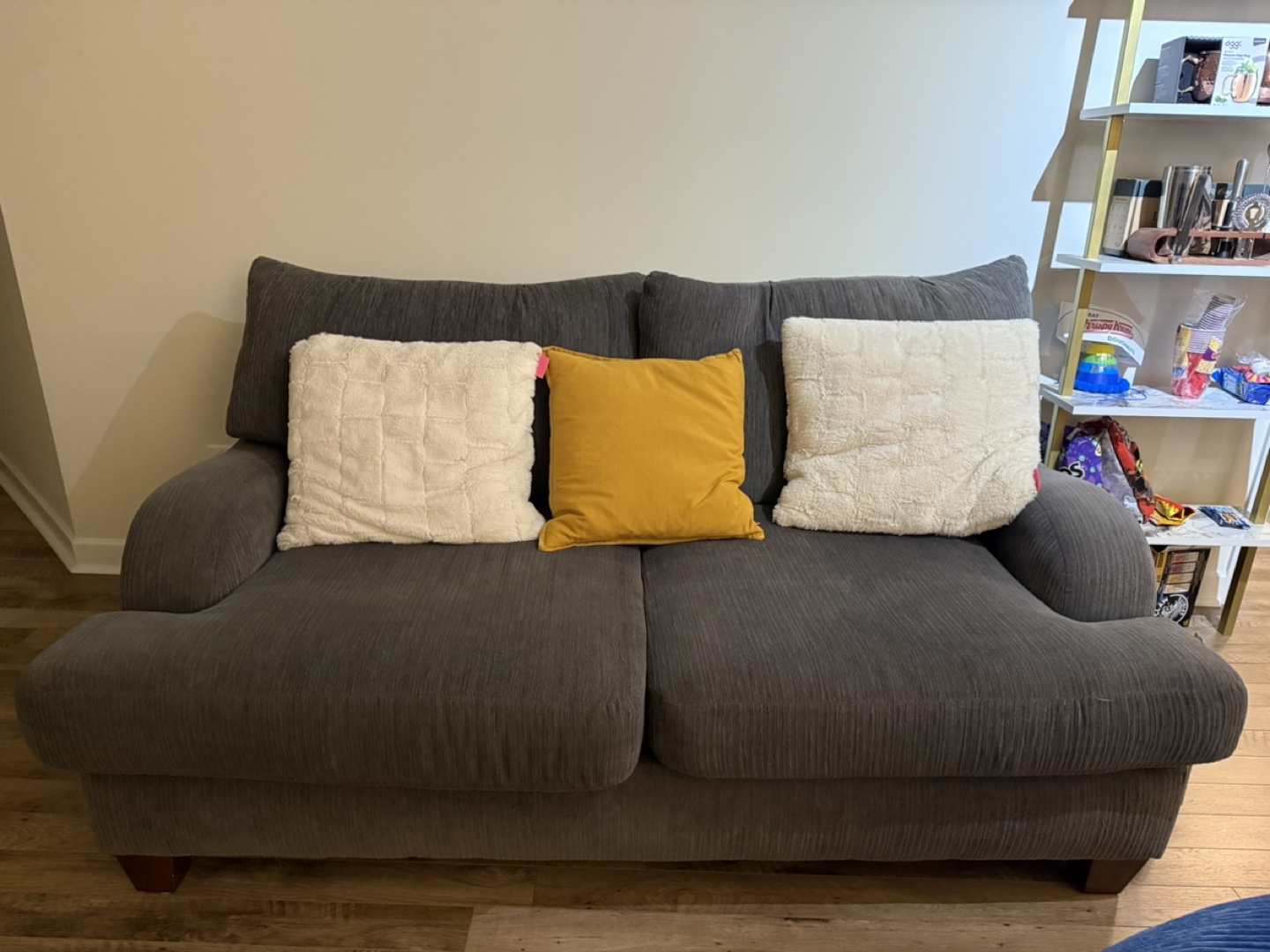 Buy & SellDark Grey LoveseatDark Grey Loveseat$80Comfortable loveseat, dark grey fabric. Includes three throw pillows. Good condition.ConditionLike newWHERE TO MEET18 Harbour StView MapSELLERNikitaWaterfront Communities43036 reviews5 chats·6 favorites·215 viewsSEND CHAT TO SELLERHi Nikita! I’m interested in your listing.Hi Nikita! I’m interested in your listing.Get the Karrot app to chatSign In to chat