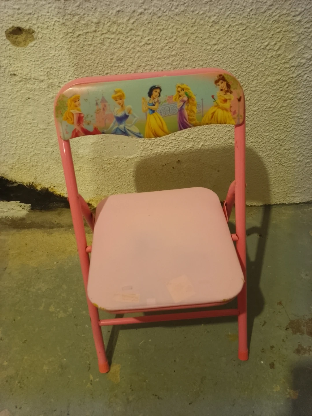 A cute pink folding chair featuring Disney Princesses! It's a great size for toddlers and young children. The chair is lightweight and easy to fold up for storage. Perfect for playrooms or as extra seating when friends visit