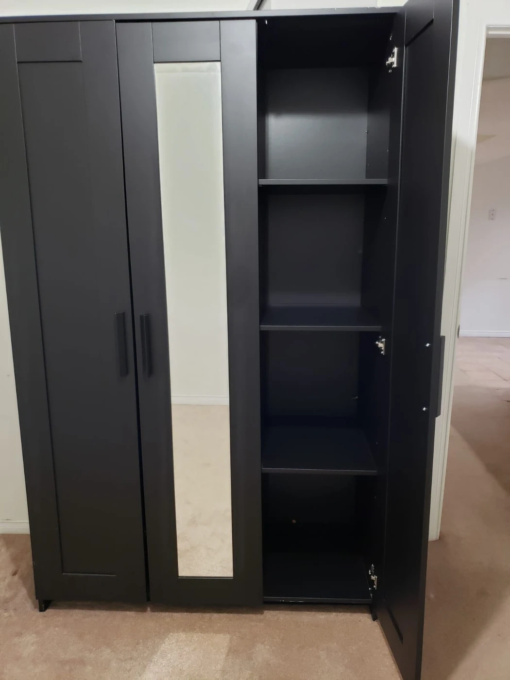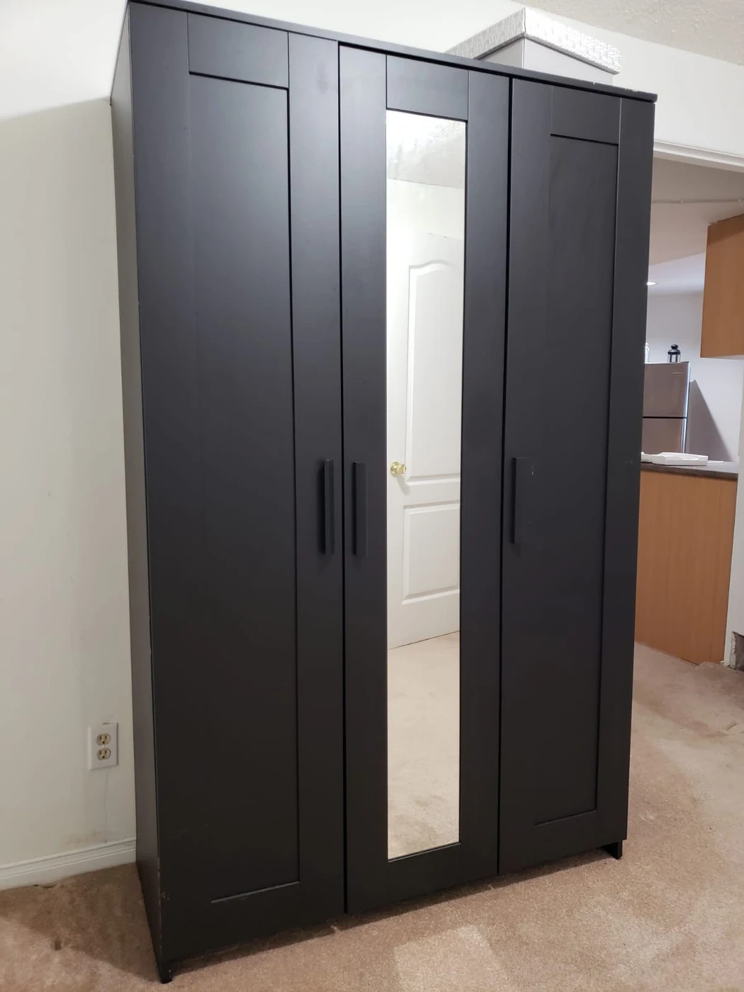 Buy & SellIkea WardrobeIkea Wardrobe$70Ikea Brimnes Wardrobe with 3 doors and mirror, ample space, assembled and clean. Dimensions 117×190cm.Dimensions117x190cmWHERE TO MEETCheck LocationView MapSELLERDishaCentral Erin Mills171 review5 chats·9 favorites·286 viewsSEND CHAT TO SELLERHi Disha! I’m interested in your listing.Hi Disha! I’m interested in your listing.Get the Karrot app to chatSign In to chat