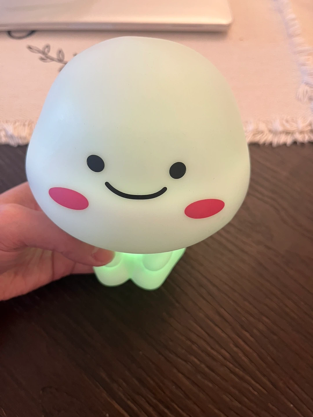 This is a cute cloud-shaped night light with a friendly face and rosy cheeks. It emits a soft, comforting glow. Perfect for a child's bedroom or as a gentle mood light! The light can change the light colour.