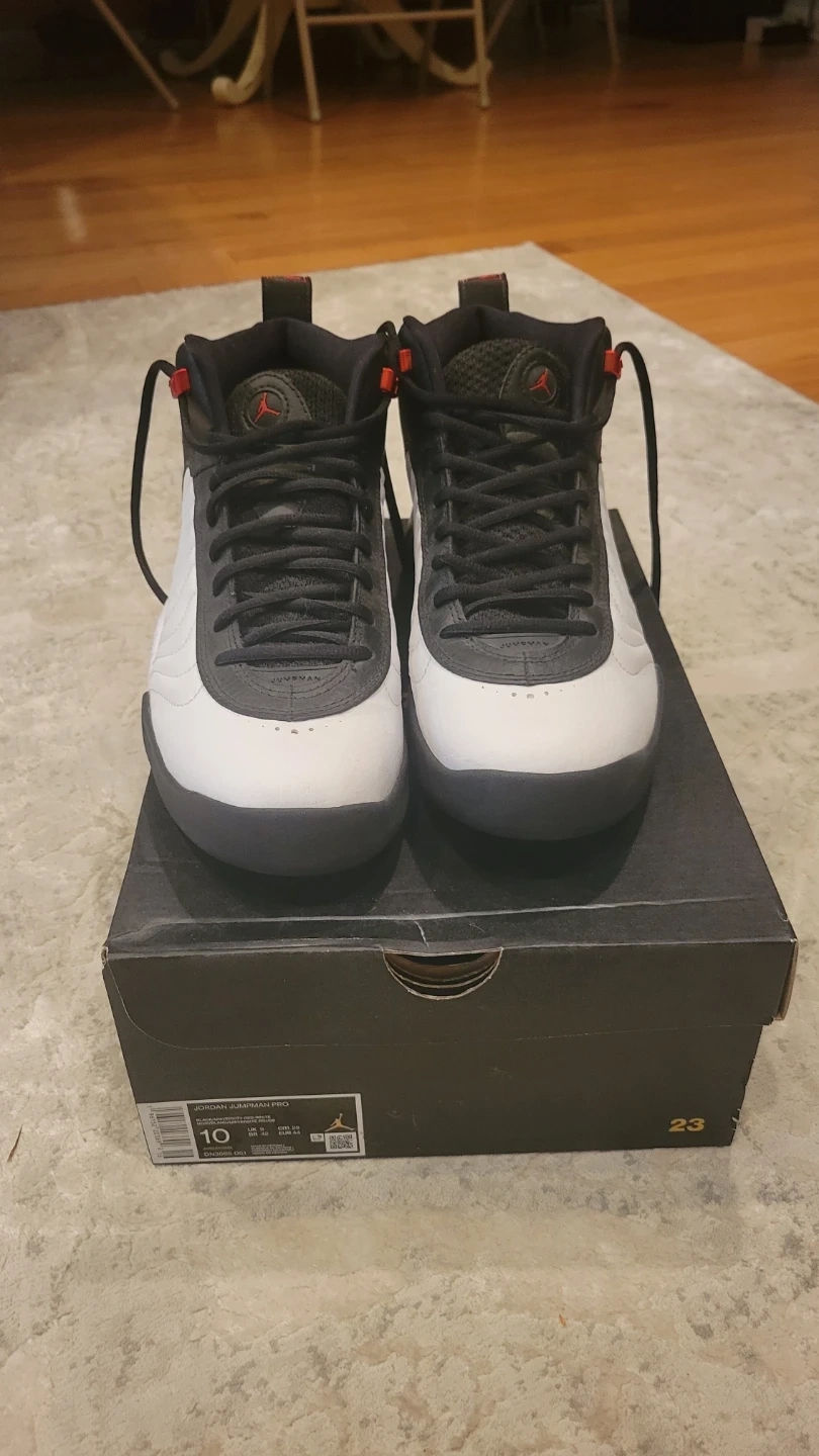Selling a pair of Jordan Jumpman Pro shoes in size 10. They come in a classic black and white colorway, perfect for on and off the court. The shoes are in great condition and include the original box.