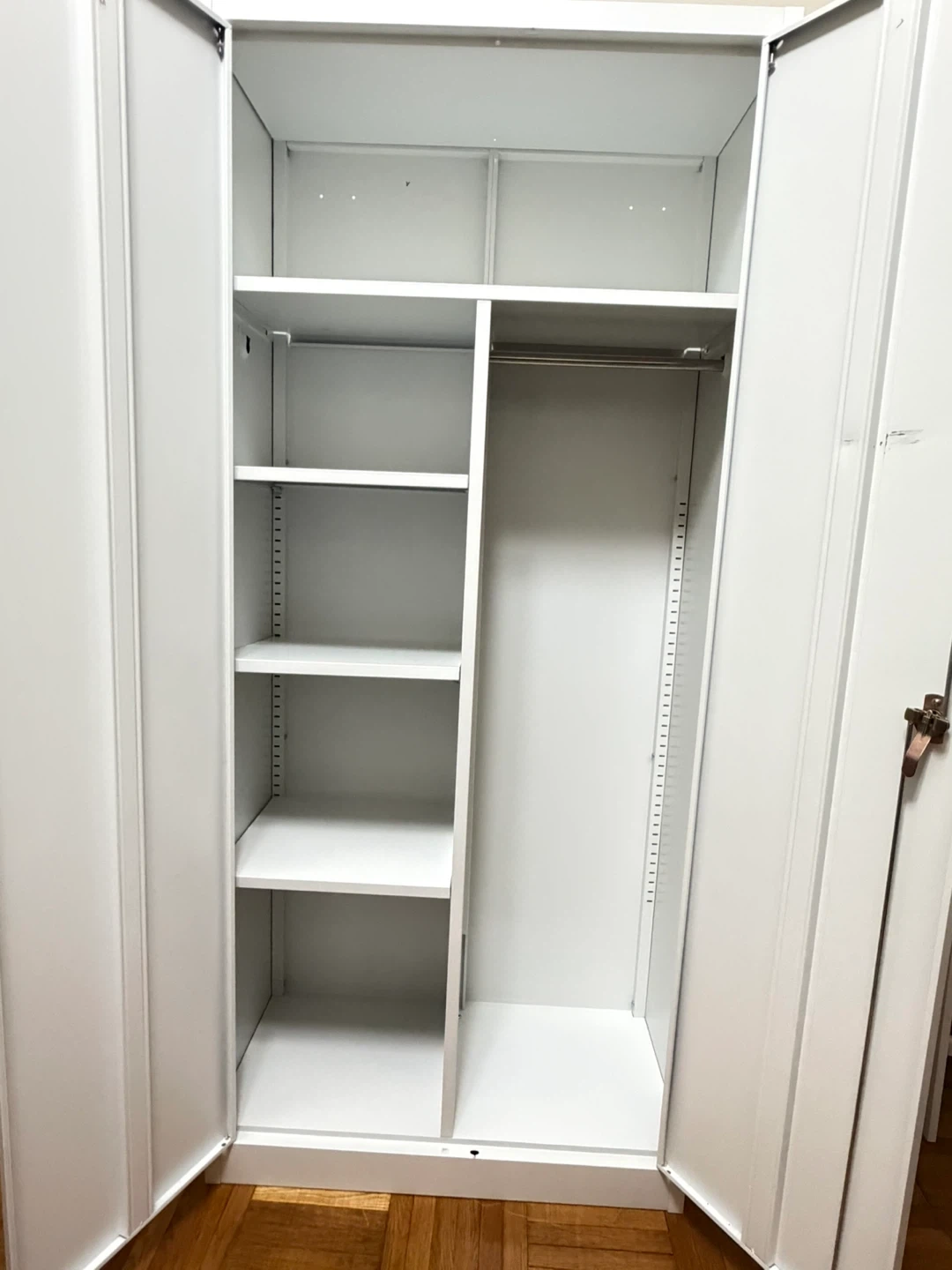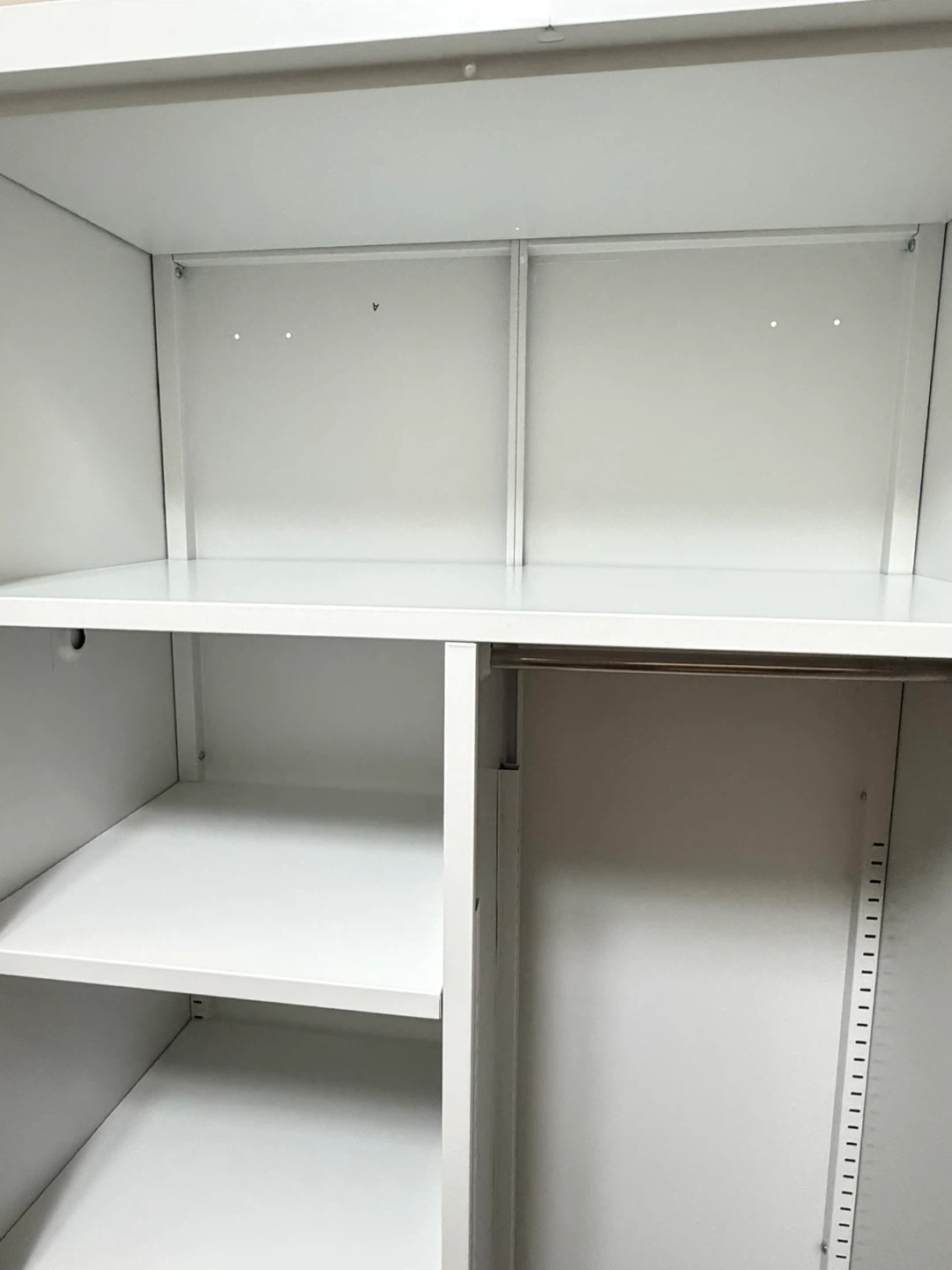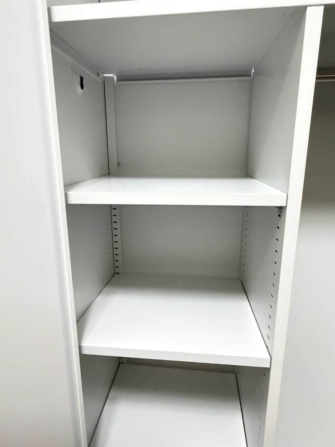 White Metal Storage Cabinet with Shelves and Hanging Rod