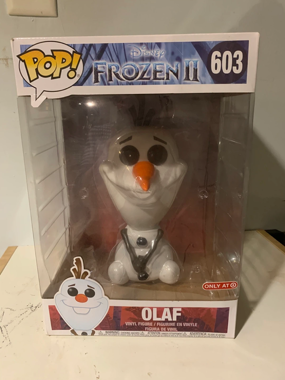 This is a Funko Pop! vinyl figure of Olaf from Disney's Frozen II. It's model number 603. The figure comes in its original packaging. This collectible is great for any Frozen fan!