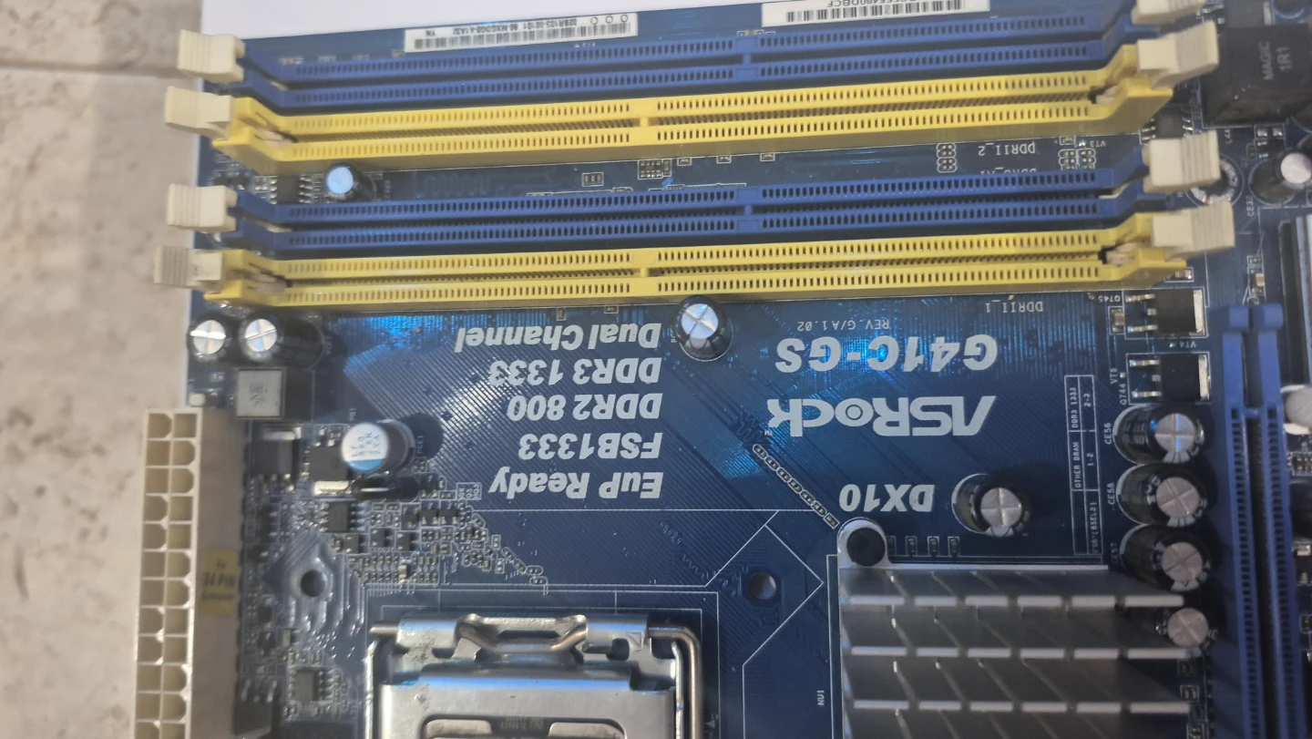 Selling an ASRock G41C-GS motherboard. It supports DDR3 1333 and DDR2 800 Dual Channel memory. It comes with the box and i have no idea its will still works i clean it up as best i could with care if you have proper tools then its all yours and oh it comes with cpu