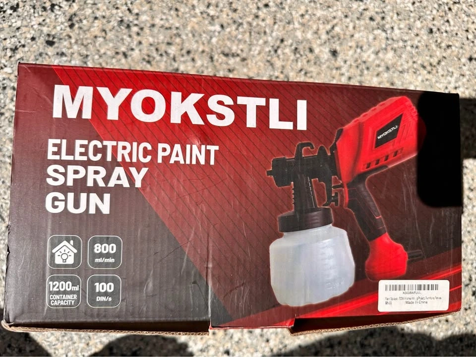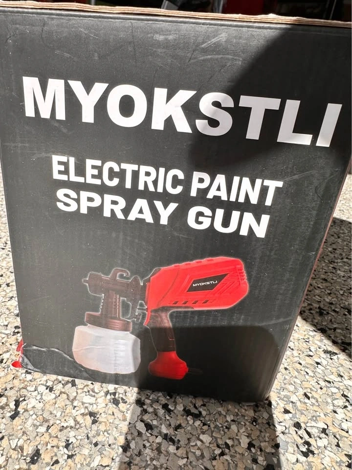 This is a brand new electric paint spray gun, still in its original box. It's ready for your next painting project.