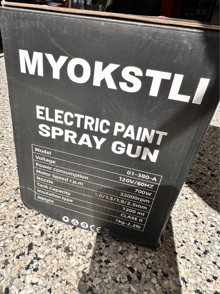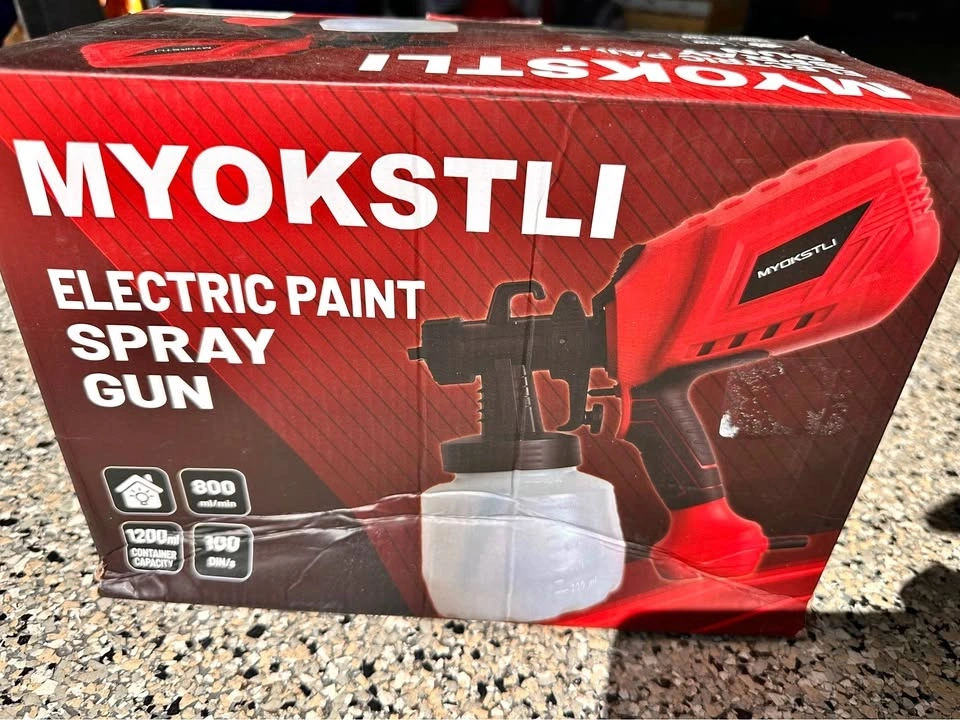 This is a brand new electric paint spray gun, still in its original box. It's ready for your next painting project.
