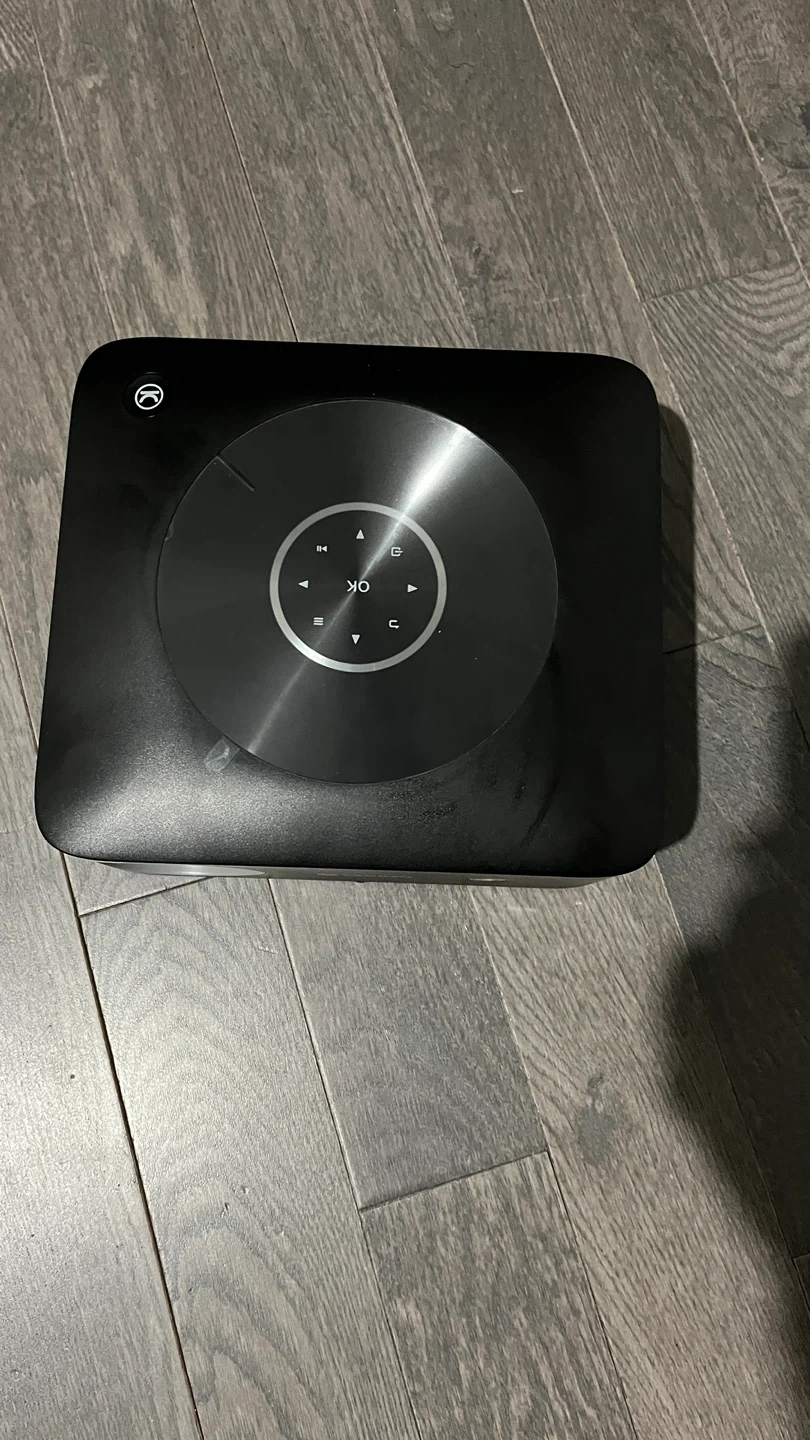 This is a VANKYO brand projector. It's black and has a compact design. Buttons are located on the top surface.