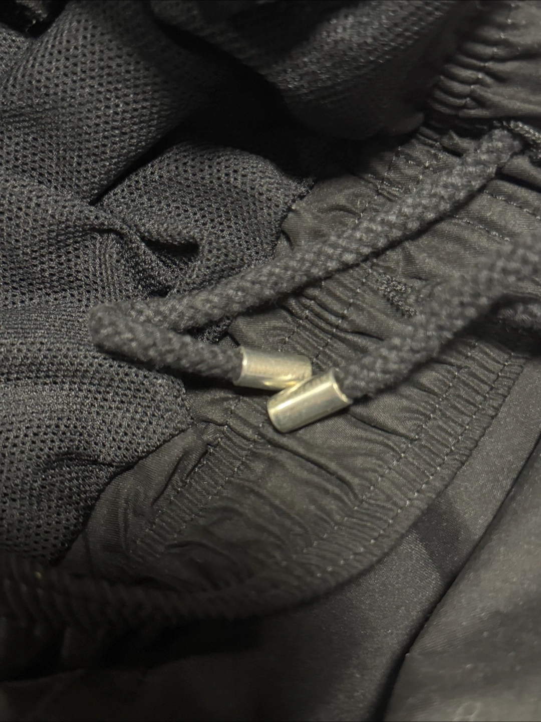 Built with a mesh lining, this monochrome pair are trimmed with a drawstring adjustable waist and are printed with contrasting logo branding to the leg. Three pockets and a mock fly complete this Portuguese made style.