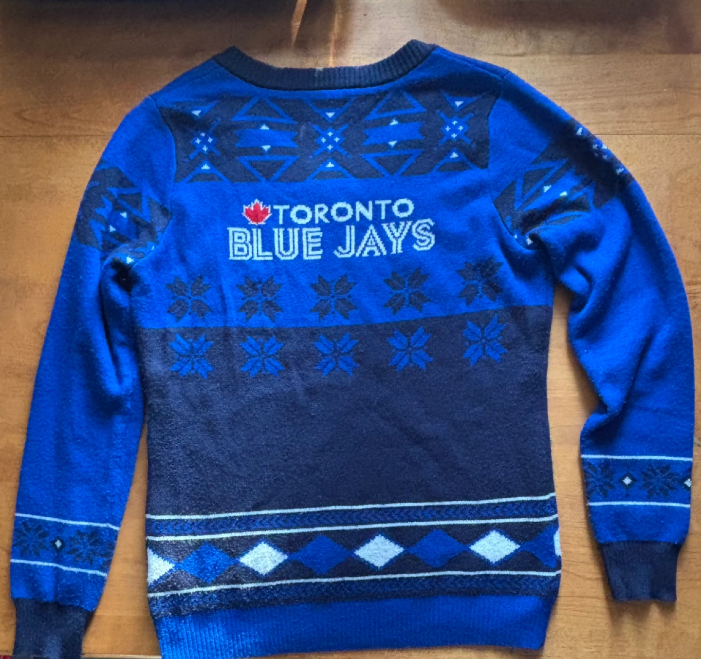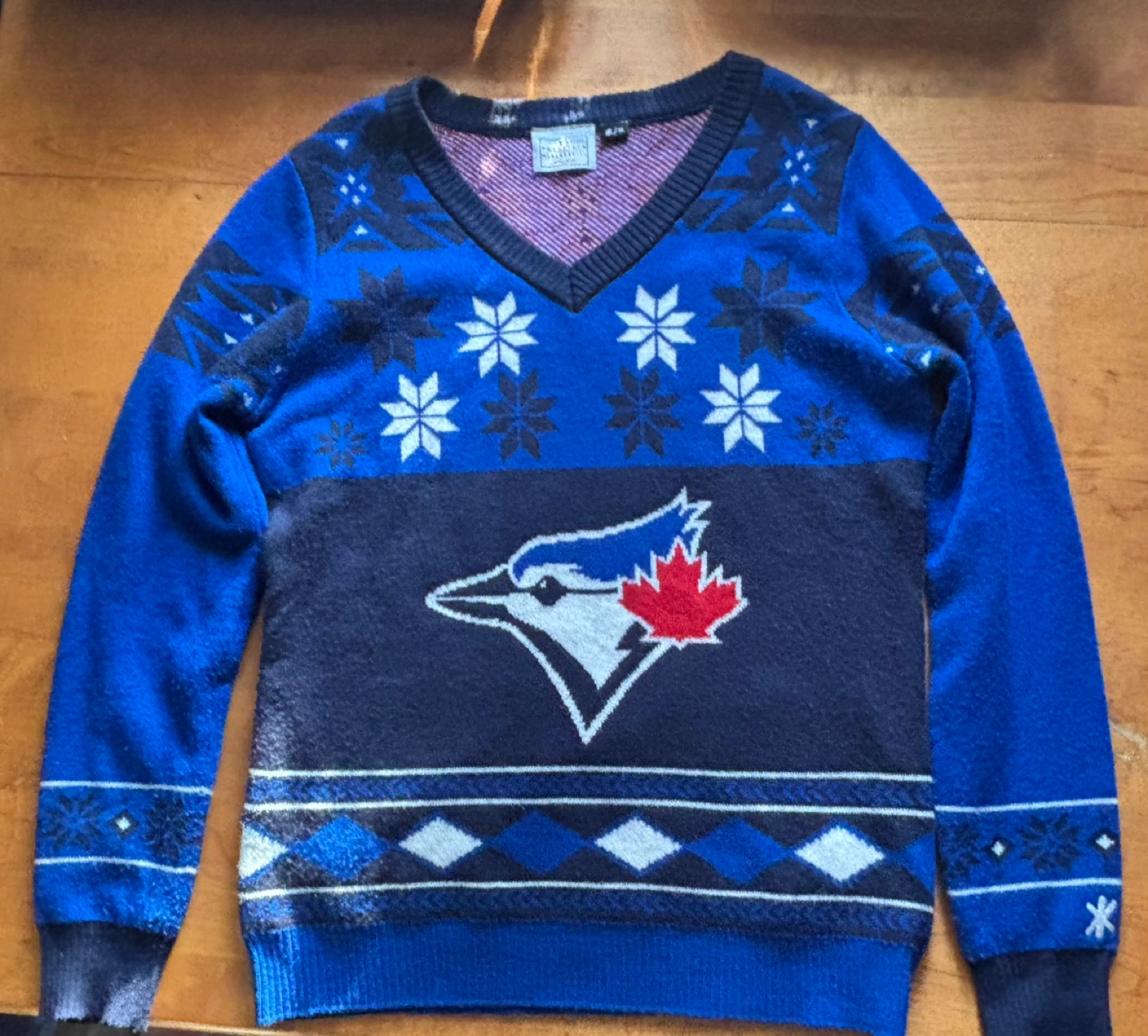 Buy & SellToronto Blue Jays Christmas SweaterToronto Blue Jays Christmas Sweater$50Blue Jays holiday sweater. V-neck, long sleeves. Festive design, team logo. UGLYConditionLike newBrandMLB Authentic WHERE TO MEETHomeView MapSELLERverifiedNormiePioneer Park903 reviews0 chats·0 favorites·5 viewsSEND CHAT TO SELLERHi Normie! I’m interested in your listing.Hi Normie! I’m interested in your listing.Get the Karrot app to chatSign In to chat