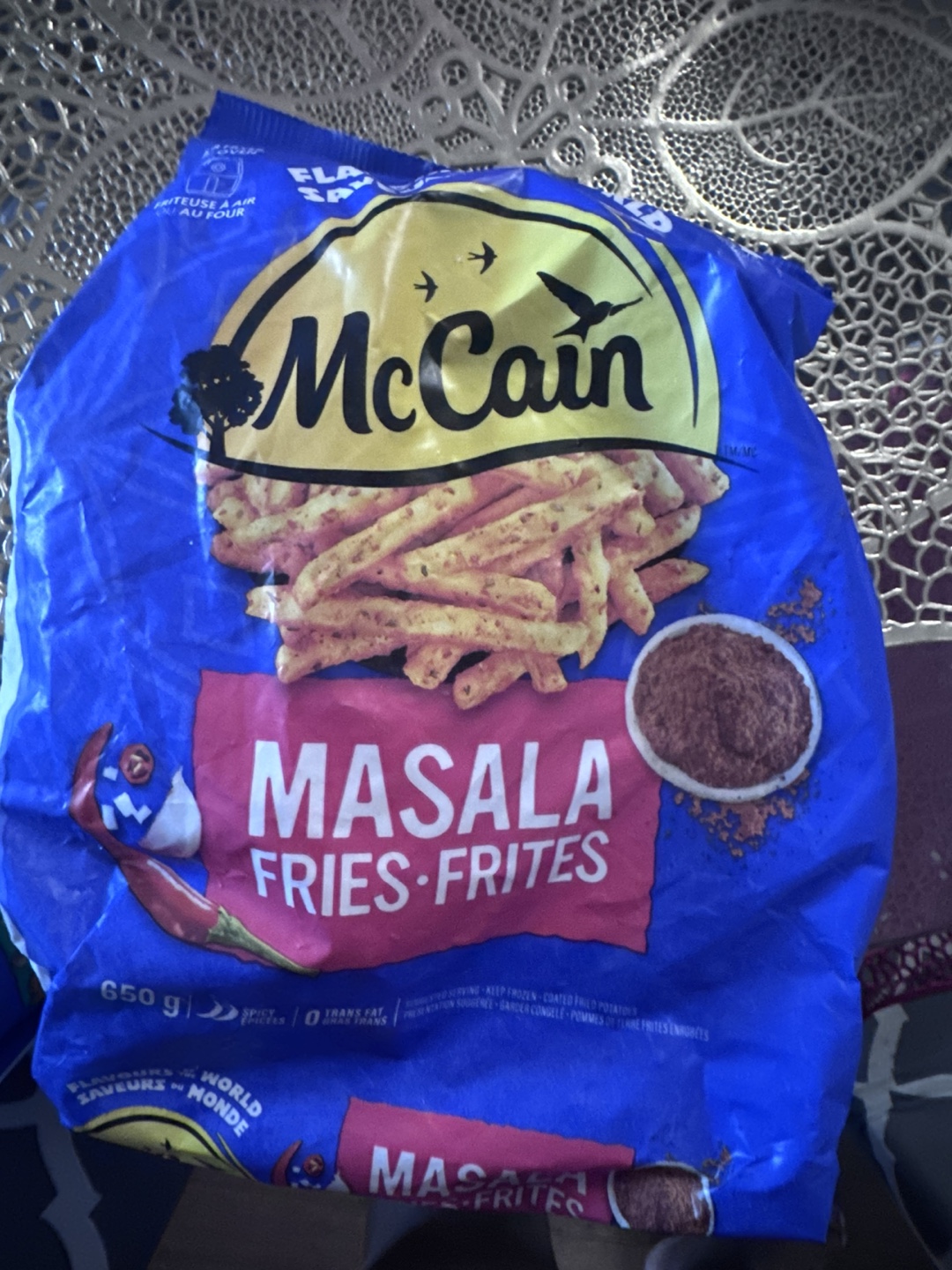 Selling a bag of McCain Masala Fries! Perfect for a quick and tasty snack or side dish. Each bag contains 650g of spicy, flavourful fries.