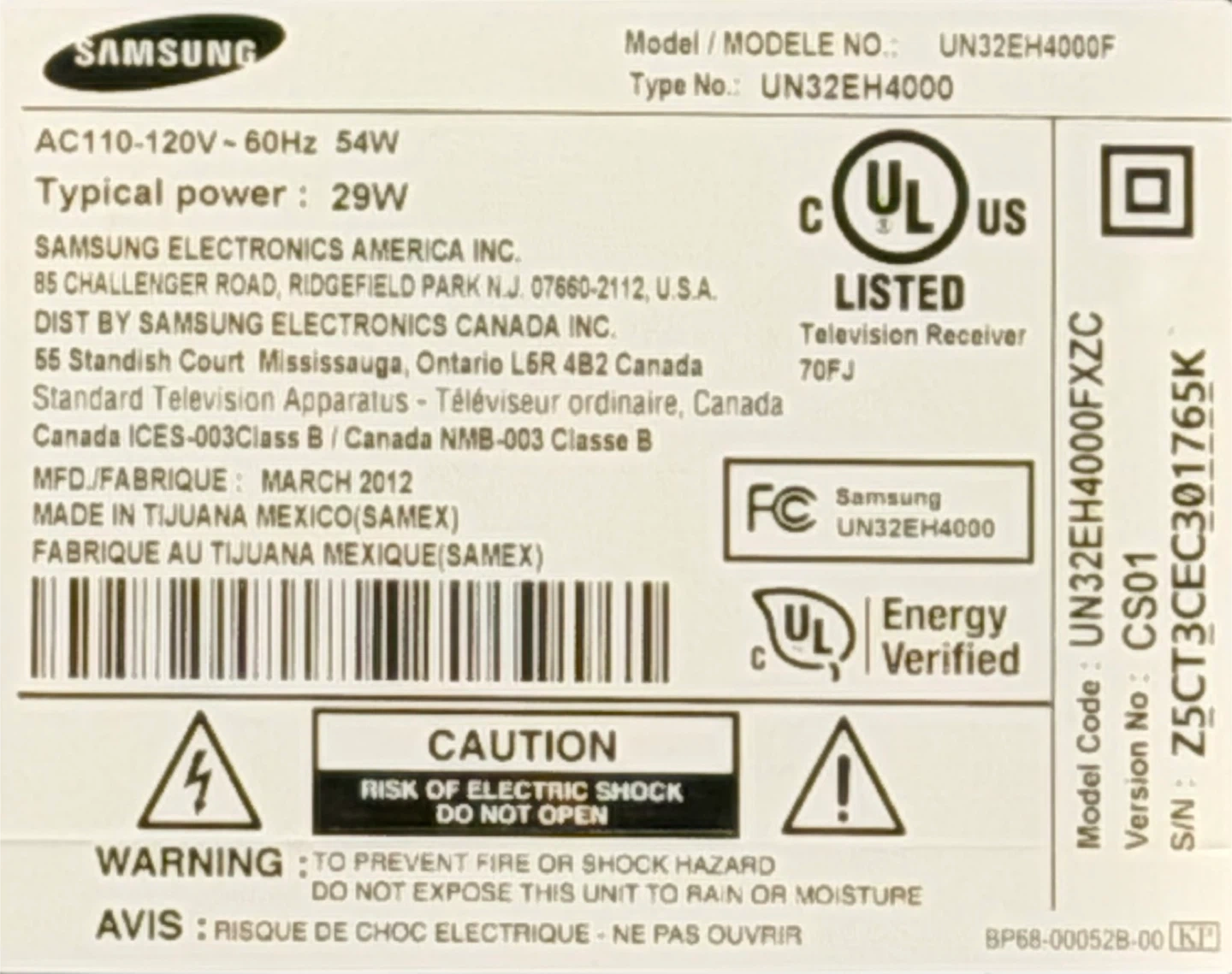 Samsung 32" UN32EH4000F Television