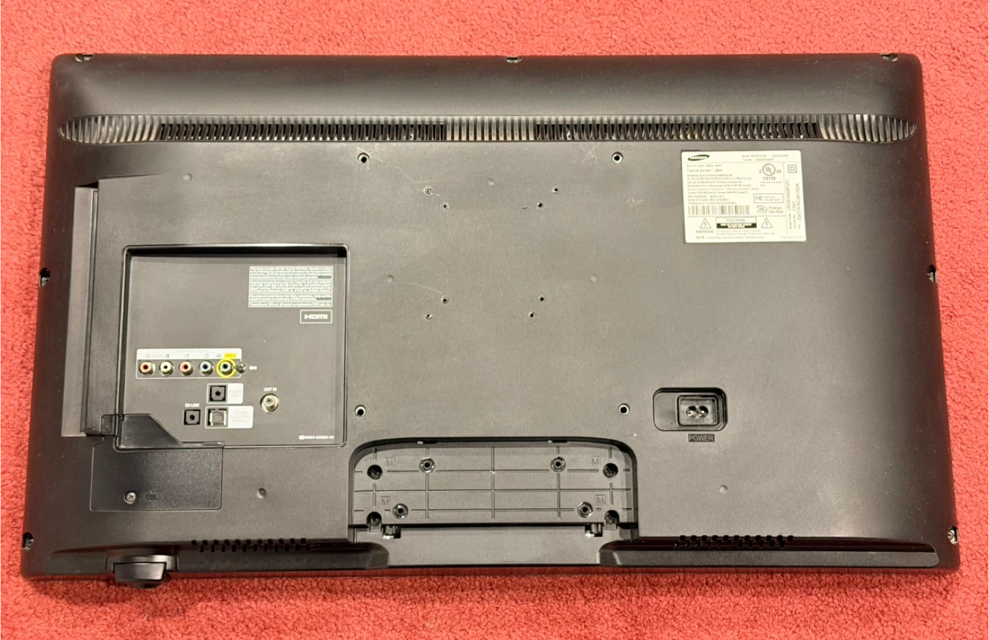 This is a Samsung 32 inch 720P television. It has HDMI, DVI, and Component/AV in, Audio out, and Digital Audio Out (Optical) ports. It also features an ANT IN port. It does not include the stand or the original remote. I can include the Harmony 650 programable remote (last photo) for $20 extra. The TV will have to be mounted on a wall. Mounts can be found on Amazon for as little as $18. The TV works perfectly. It was previously used as an occasional use computer monitor. Perfect for a kid’s room. Pick up only.