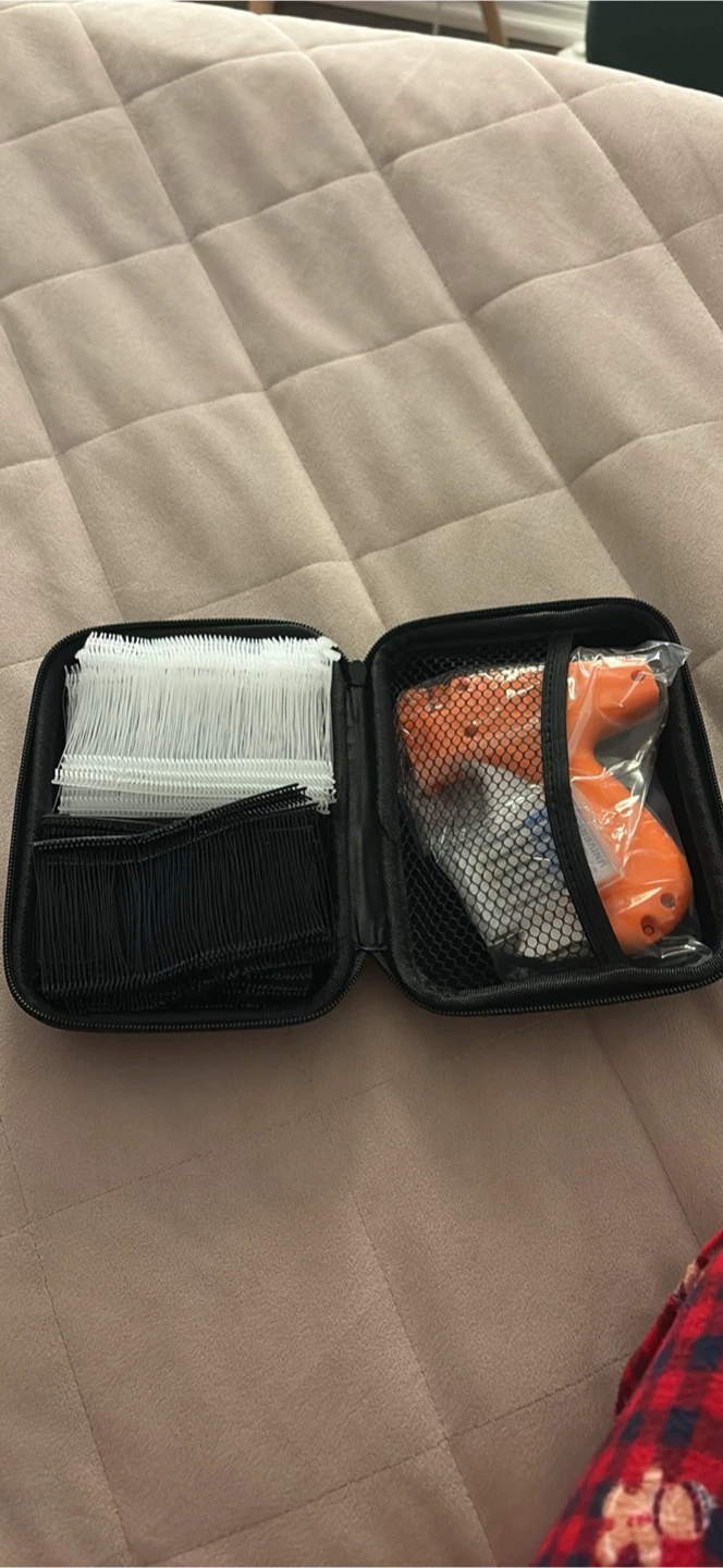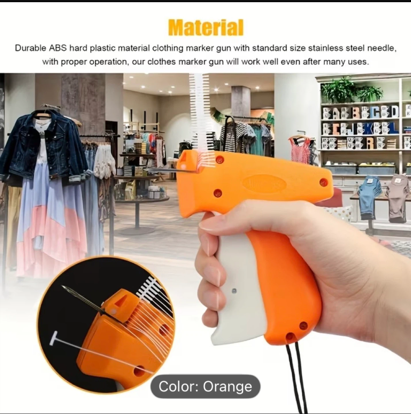 This set includes an orange clothing tagging gun with a stainless steel needle. It comes with 2000 black and white barbs and a convenient carrying case. The gun is made from durable ABS hard plastic.