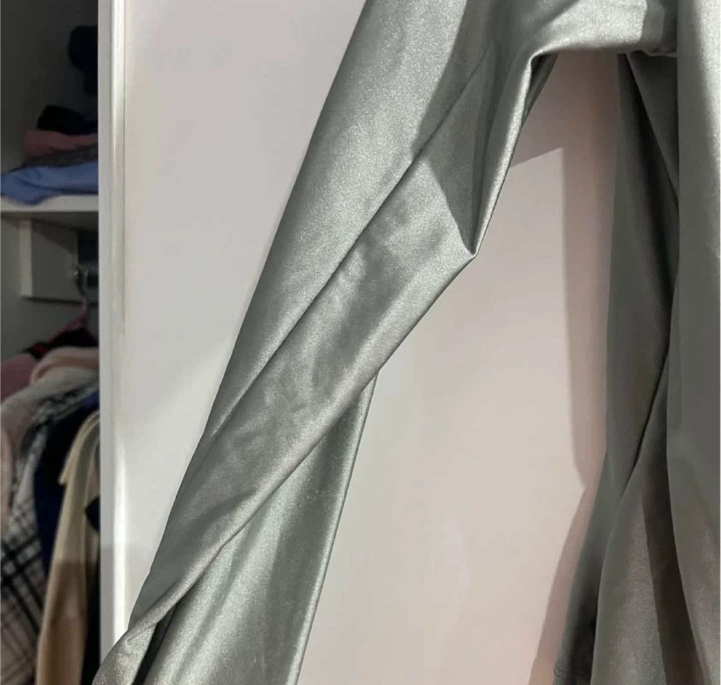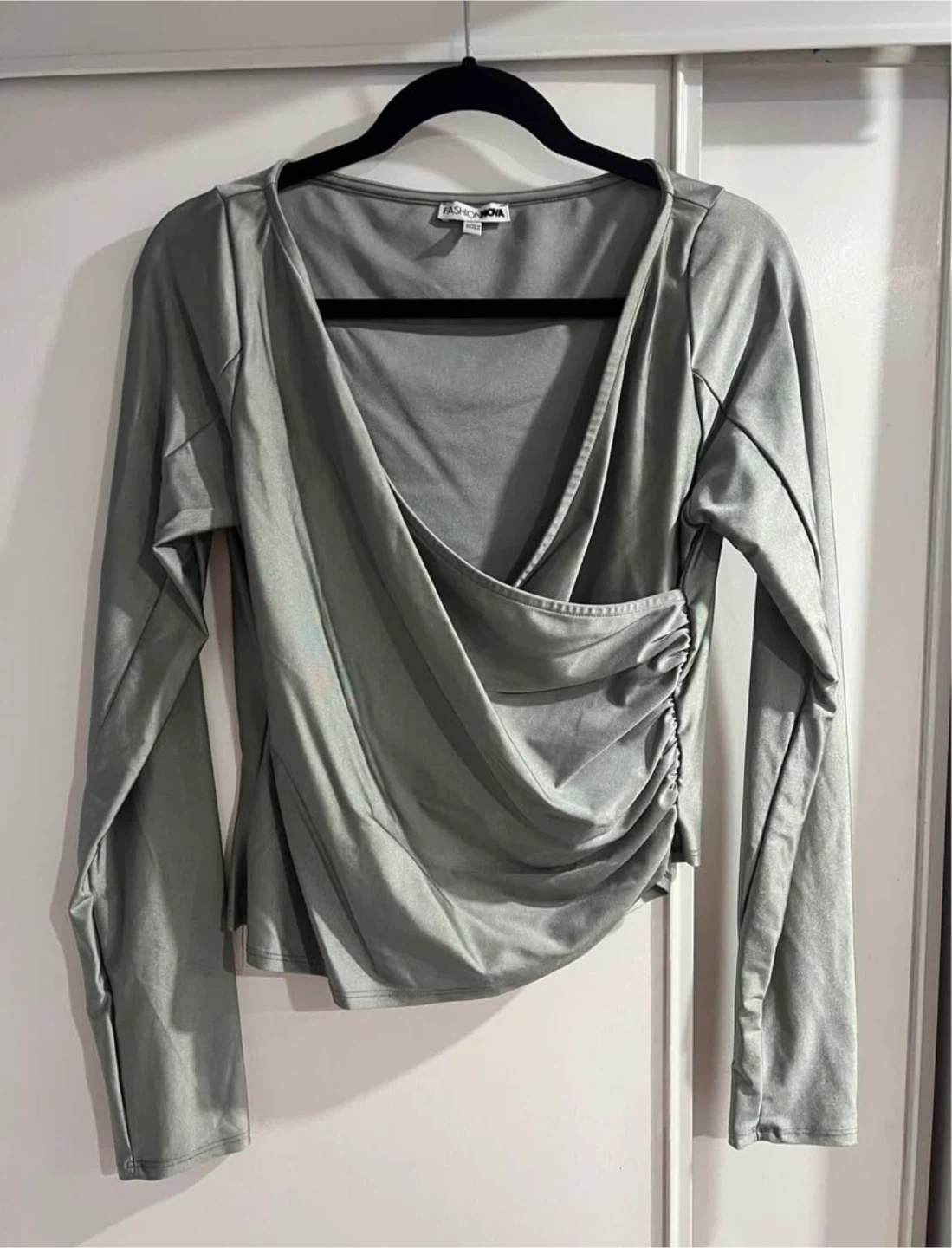 Selling a Fashion Nova Lover Girl Metallic Legging Set in silver. It's a size large. The set includes a long-sleeve top and leggings. Great for a night out!