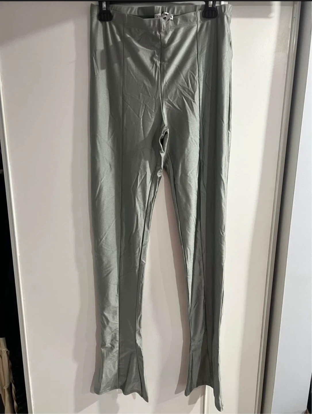 Selling a Fashion Nova Lover Girl Metallic Legging Set in silver. It's a size large. The set includes a long-sleeve top and leggings. Great for a night out!