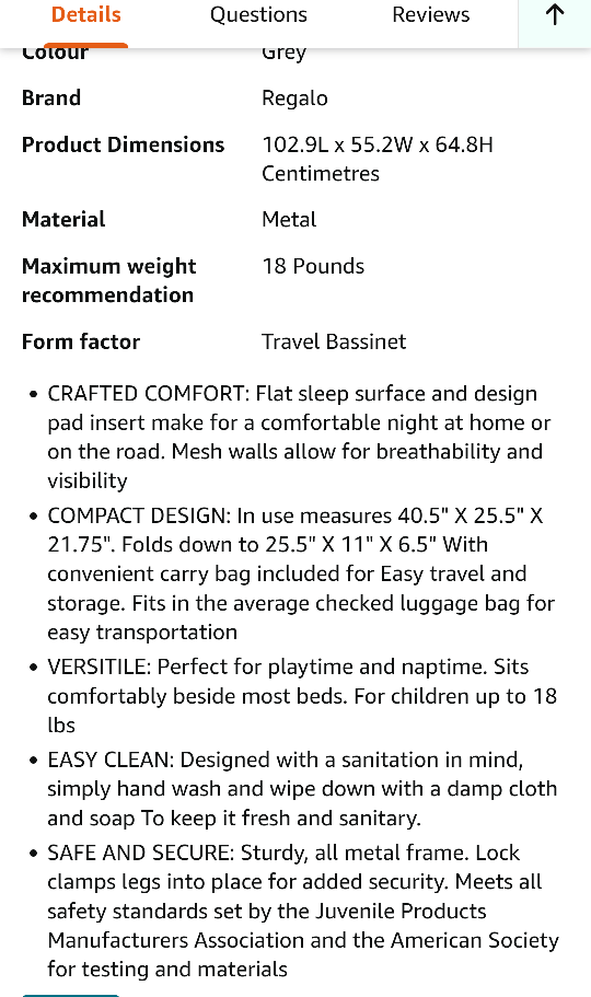 Regalo Travel Crib