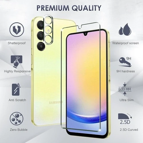 Selling a Kiewhay Tempered Glass screen protector kit for the Samsung Galaxy A25 5G (6.5 inch). This kit includes 3 screen protectors and 2 camera lens protectors. They offer 9H hardness for great scratch and impact resistance. The glass is 0.33mm ultra-thin and 99.99% HD clear, ensuring high transparency and responsive touch. Installation is easy and bubble-free. The 2.5D edges provide a smooth feel. These protectors are case-friendly. Package includes cleaning wipes and dust removal stickers. Exclusively designed for Samsung Galaxy A25 5G (6.5 inch). If the fingerprint sensor is less responsive after installation, it is recommended to reset the fingerprint recognition. Feel free to message if you have any questions!