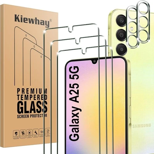 Selling a Kiewhay Tempered Glass screen protector kit for the Samsung Galaxy A25 5G (6.5 inch). This kit includes 3 screen protectors and 2 camera lens protectors. They offer 9H hardness for great scratch and impact resistance. The glass is 0.33mm ultra-thin and 99.99% HD clear, ensuring high transparency and responsive touch. Installation is easy and bubble-free. The 2.5D edges provide a smooth feel. These protectors are case-friendly. Package includes cleaning wipes and dust removal stickers. Exclusively designed for Samsung Galaxy A25 5G (6.5 inch). If the fingerprint sensor is less responsive after installation, it is recommended to reset the fingerprint recognition. Feel free to message if you have any questions!