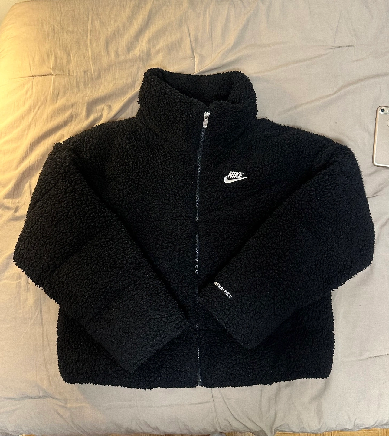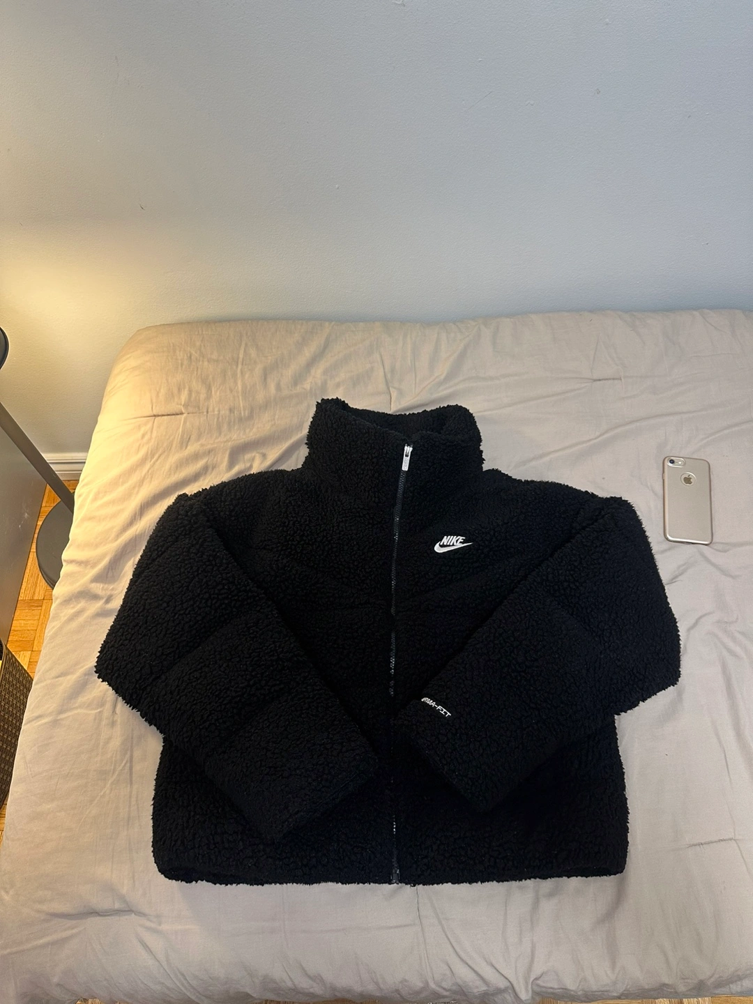 Nike Therma-FIT sherpa jacket. Black colour. Full zip closure. Soft and cozy fleece. Great for cold weather. In good condition.