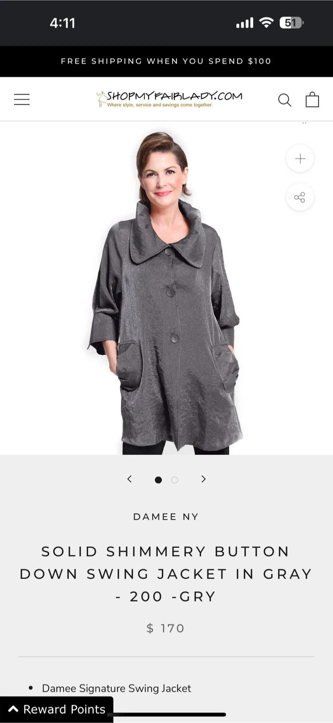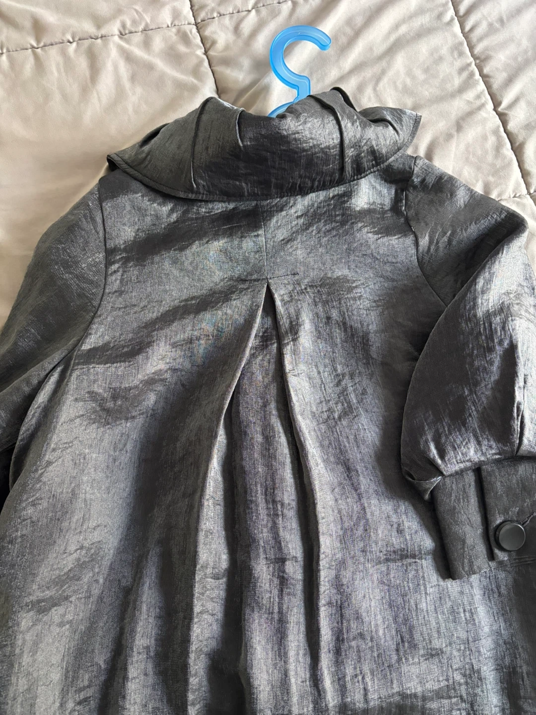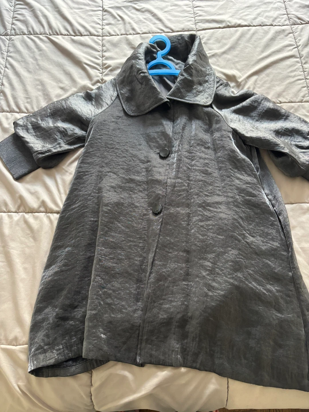 Selling a Damee NY solid shimmery button down swing jacket in gray. It's in great condition and ready for a new owner! This jacket originally retailed for $170.
