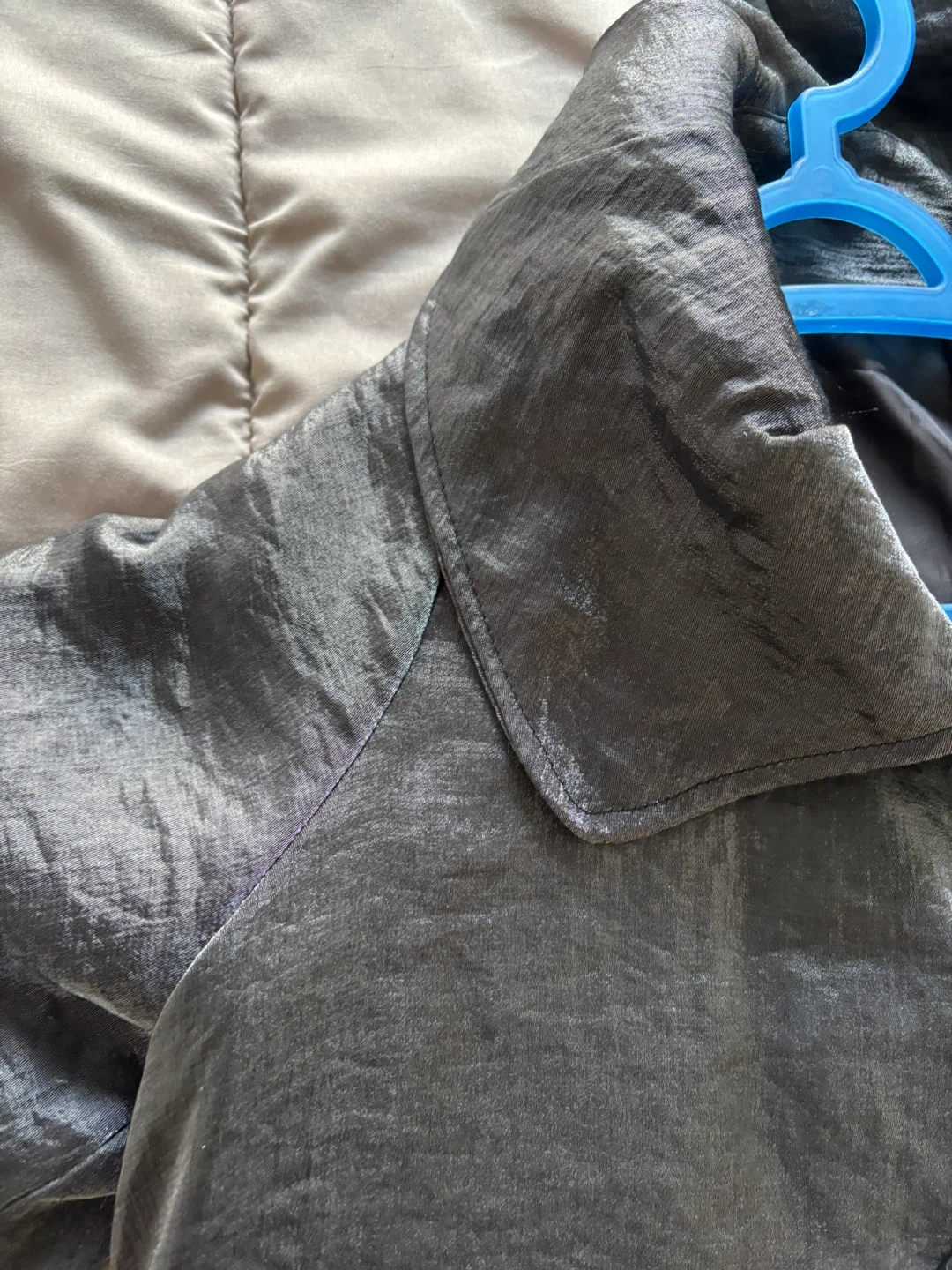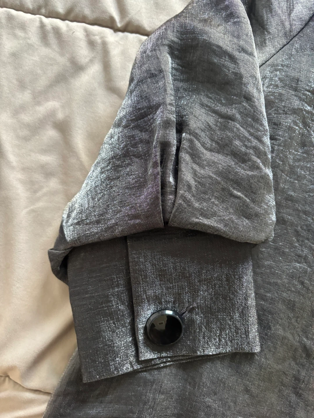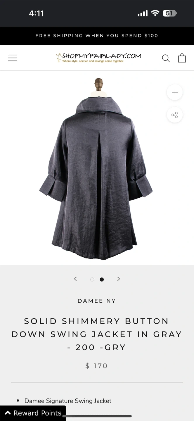 Selling a Damee NY solid shimmery button down swing jacket in gray. It's in great condition and ready for a new owner! This jacket originally retailed for $170.