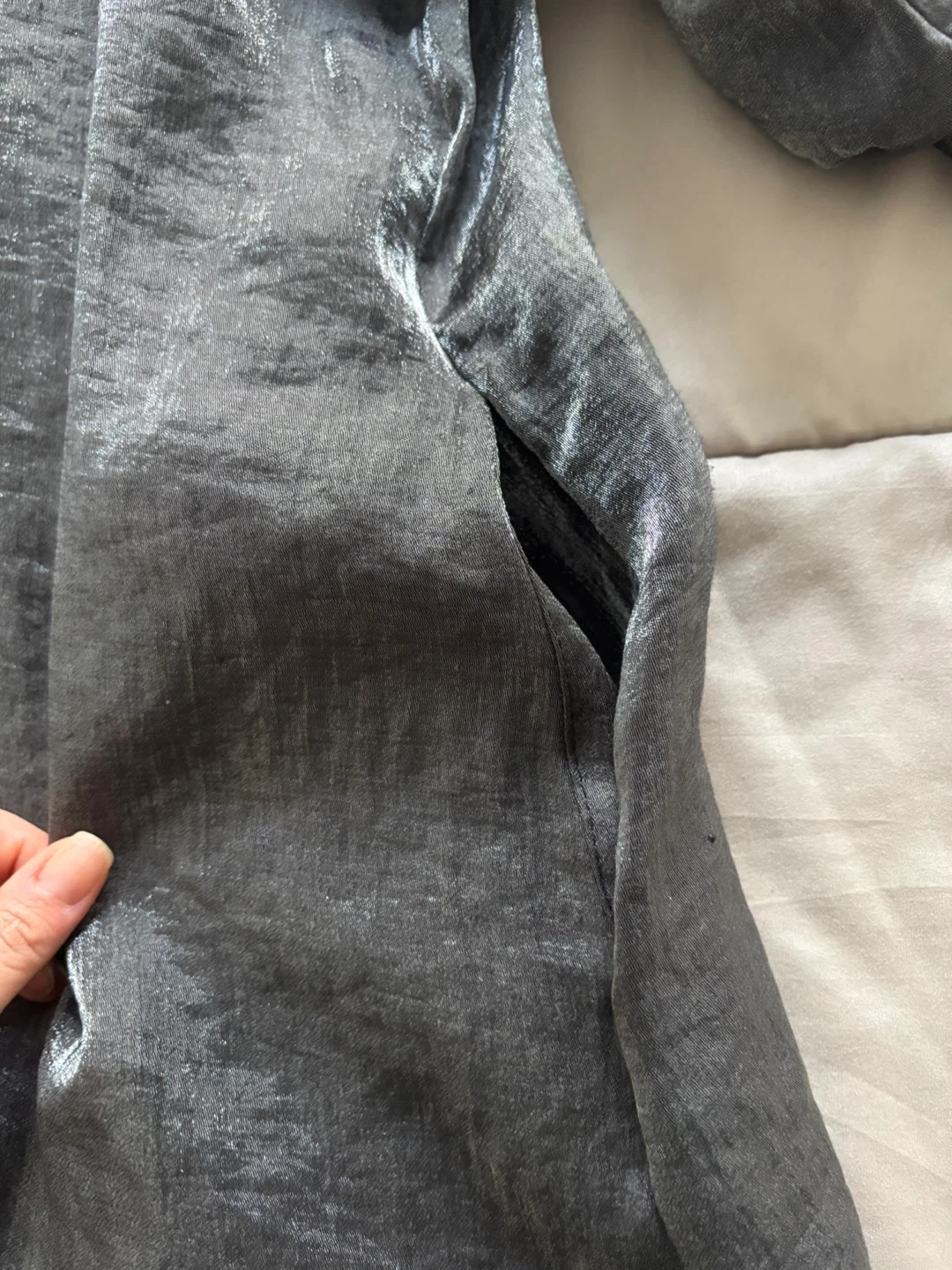 Selling a Damee NY solid shimmery button down swing jacket in gray. It's in great condition and ready for a new owner! This jacket originally retailed for $170.