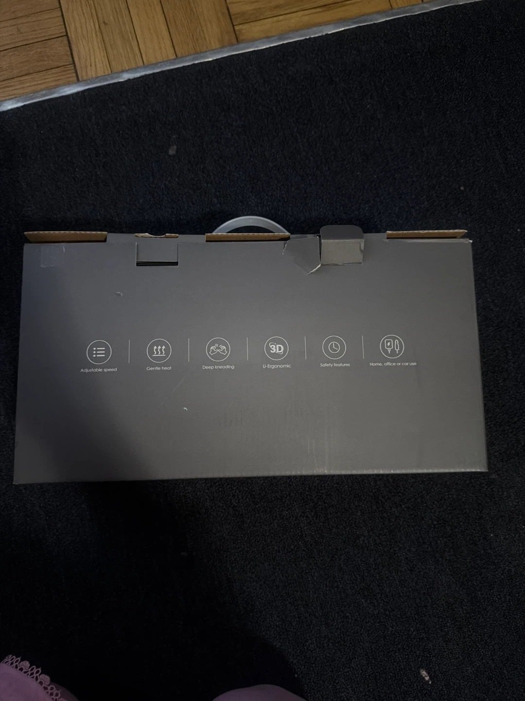 This Marnur Shiatsu massager offers 3D rotating nodes and gentle heat for neck and shoulder relief. It features adjustable speed, deep kneading, and a U-ergonomic design. The unit's dimensions are 36.5 x 13.0 x 19.0 cm. Includes power adapter for home or office use.