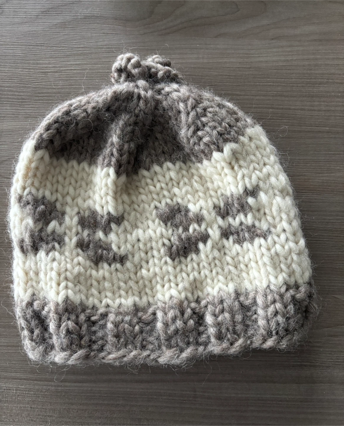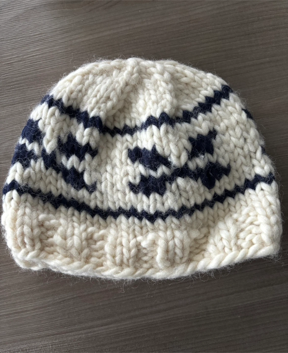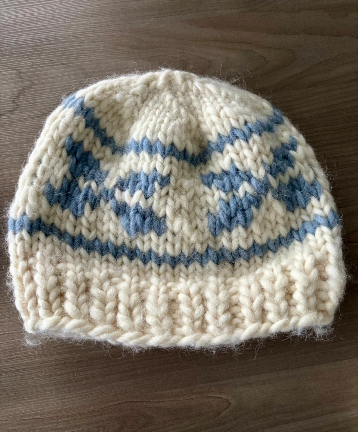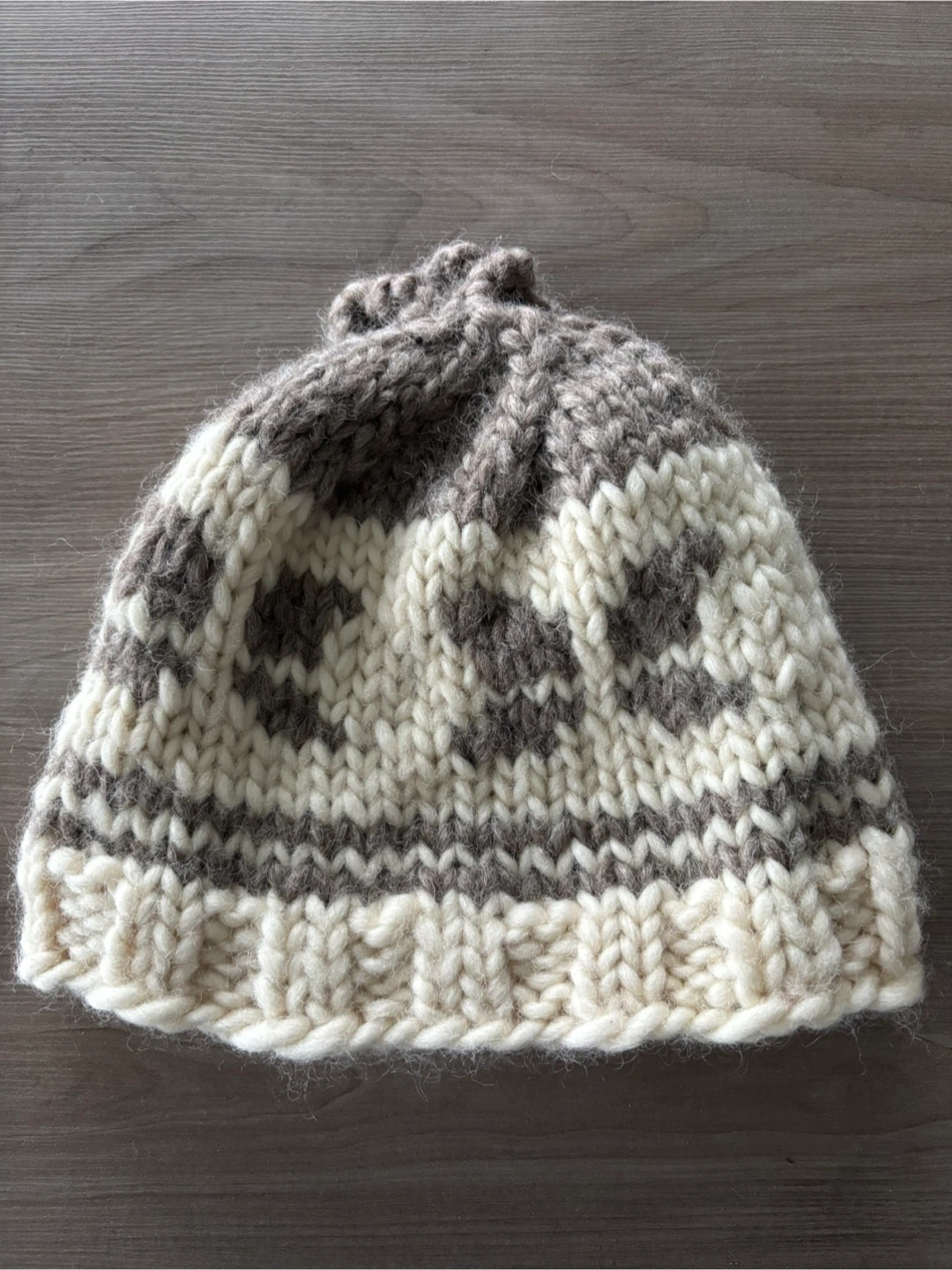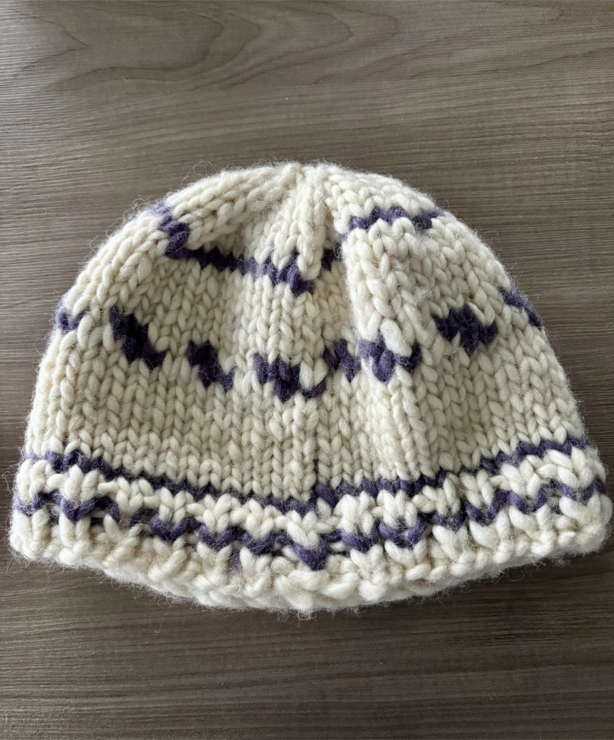 Cozy hand-knit beanie by my mom. It's a warm accessory for chilly days. Made from thick π― Canadian wool for extra insulation.