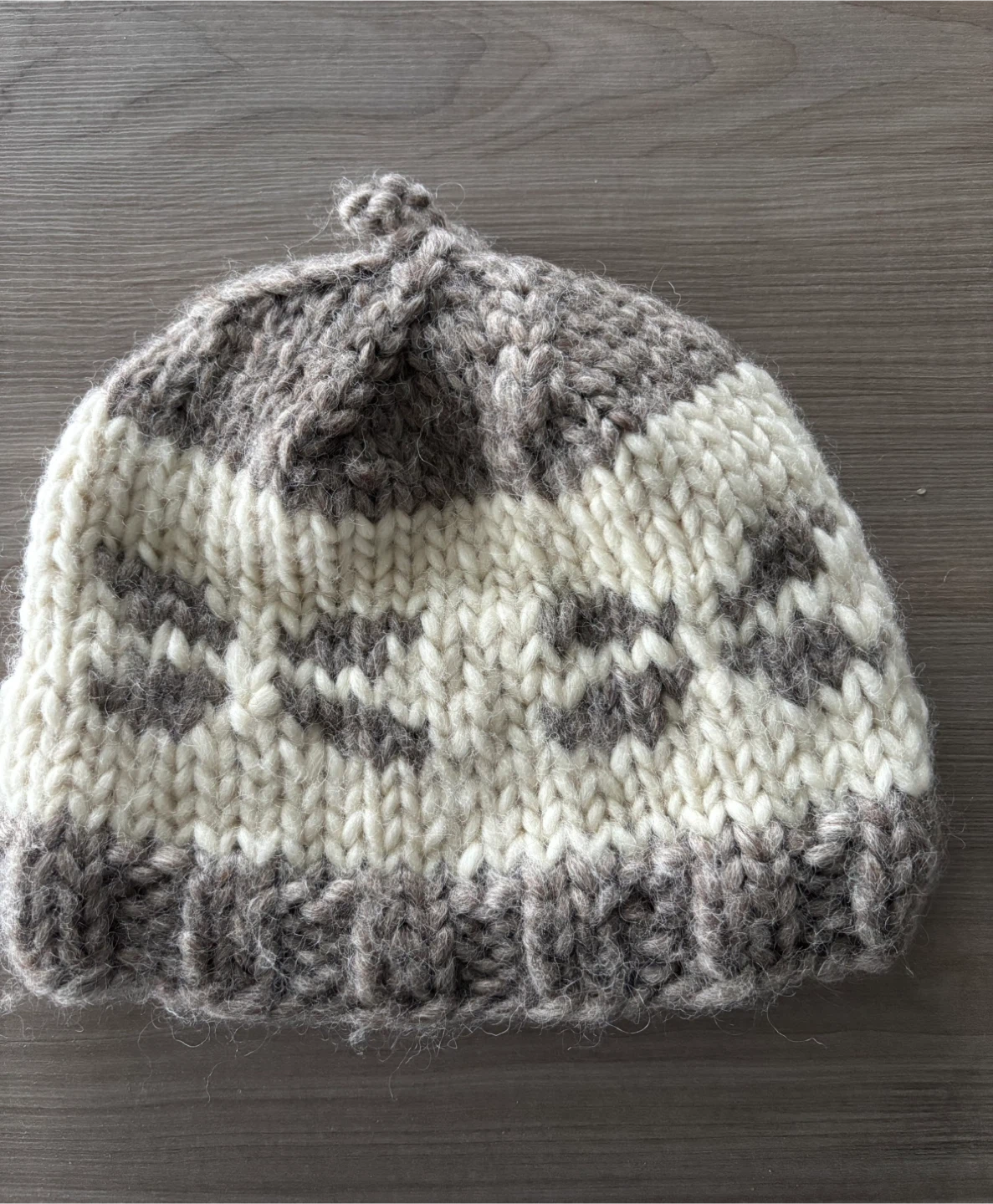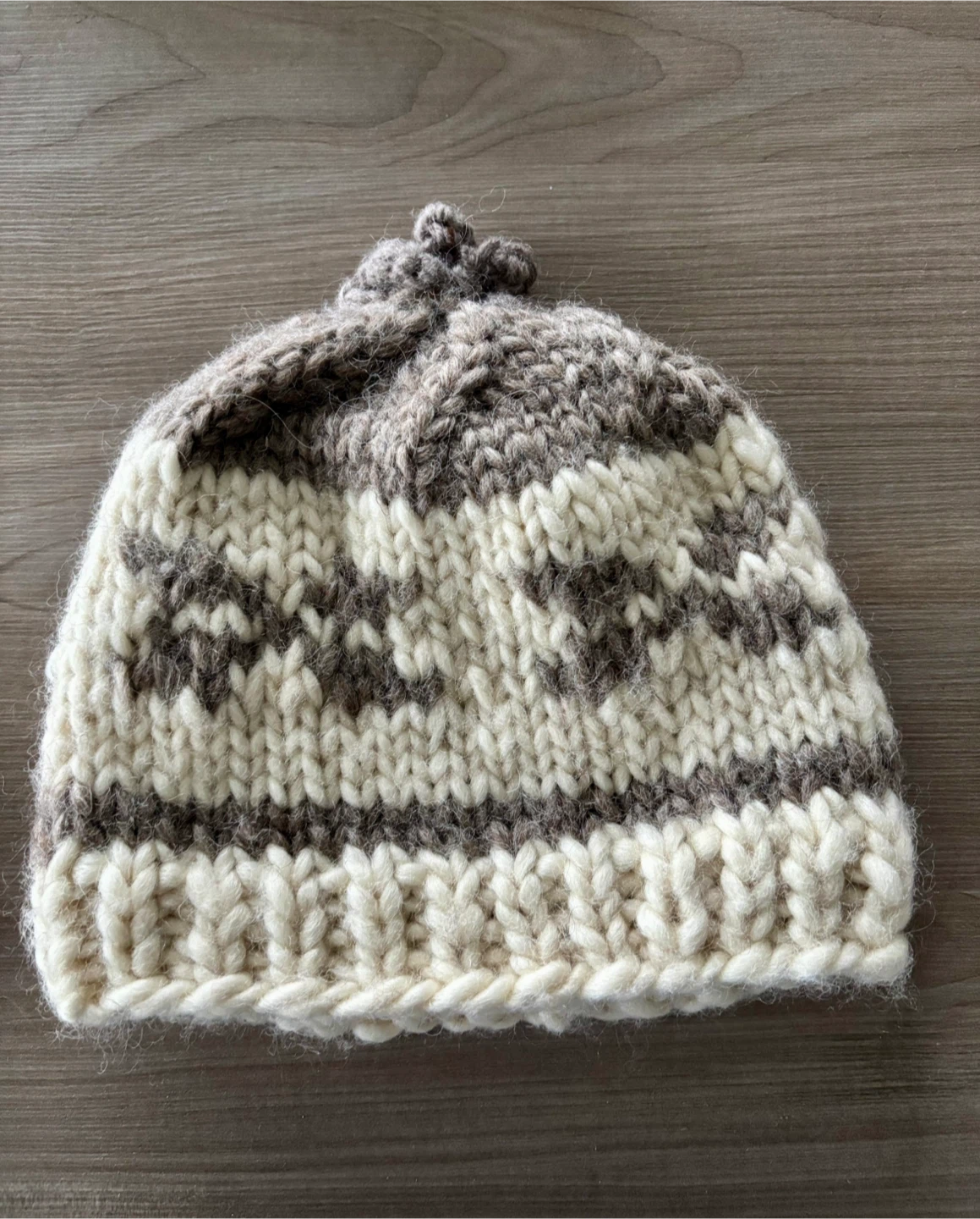 Cozy hand-knit beanie by my mom. It's a warm accessory for chilly days. Made from thick π― Canadian wool for extra insulation.