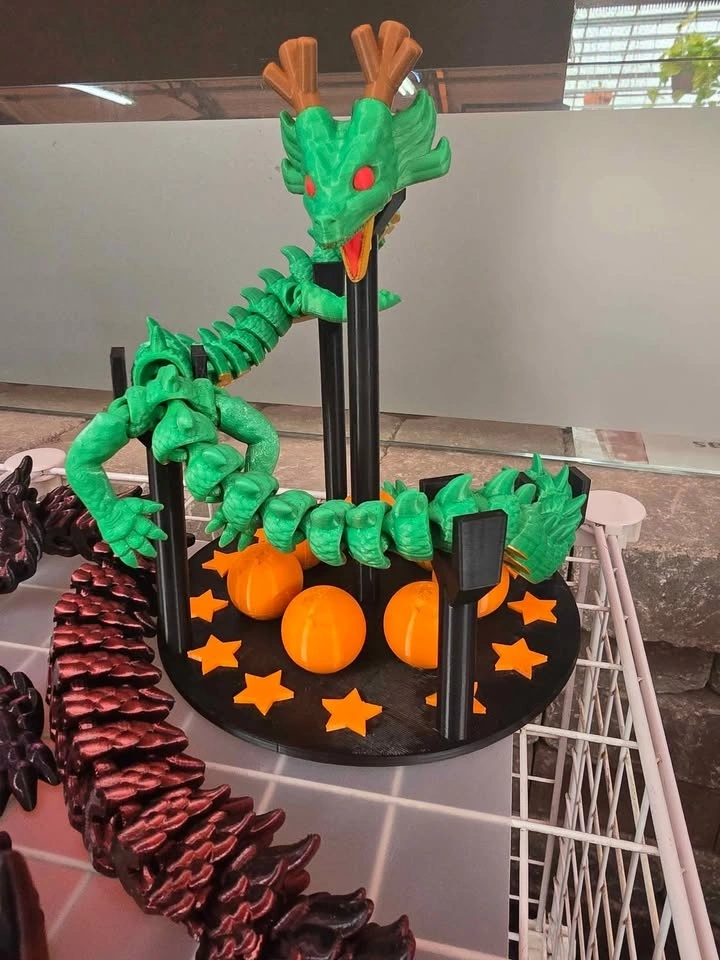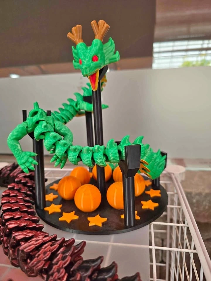 Shenron from Dragon Ball Z with dragon ball stand. All 3D printed. Shenron is fully articulated and will provide endless hours of fun imaginative play. $50 for Shenron and stand. Can be done in any colors you like.