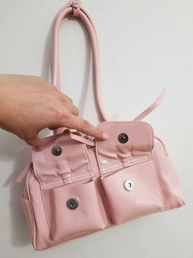 This charming pink purse is the perfect accessory to add a pop of colour to your outfit, featuring a unique front pocket design and comfortable shoulder straps. As you can see from the pictures, it is in used condition. I've always said purses are like potato chips, you can't have just one, and this one could be yours! Cash accepted.