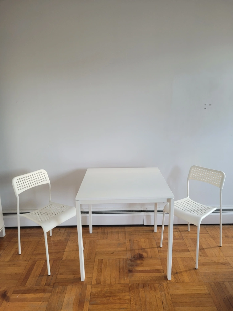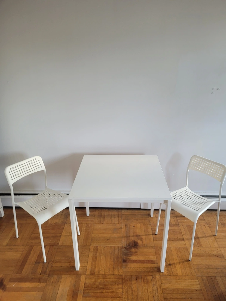 Square Dining Table With 2 White Matching Chairs (Delivery Available)