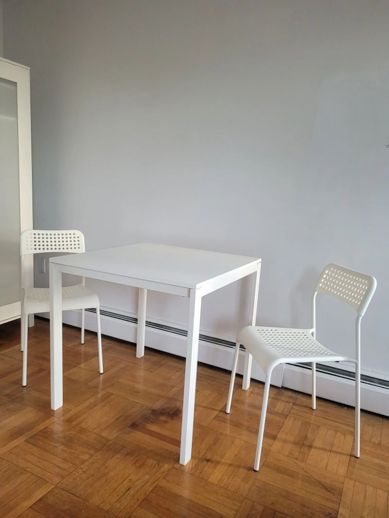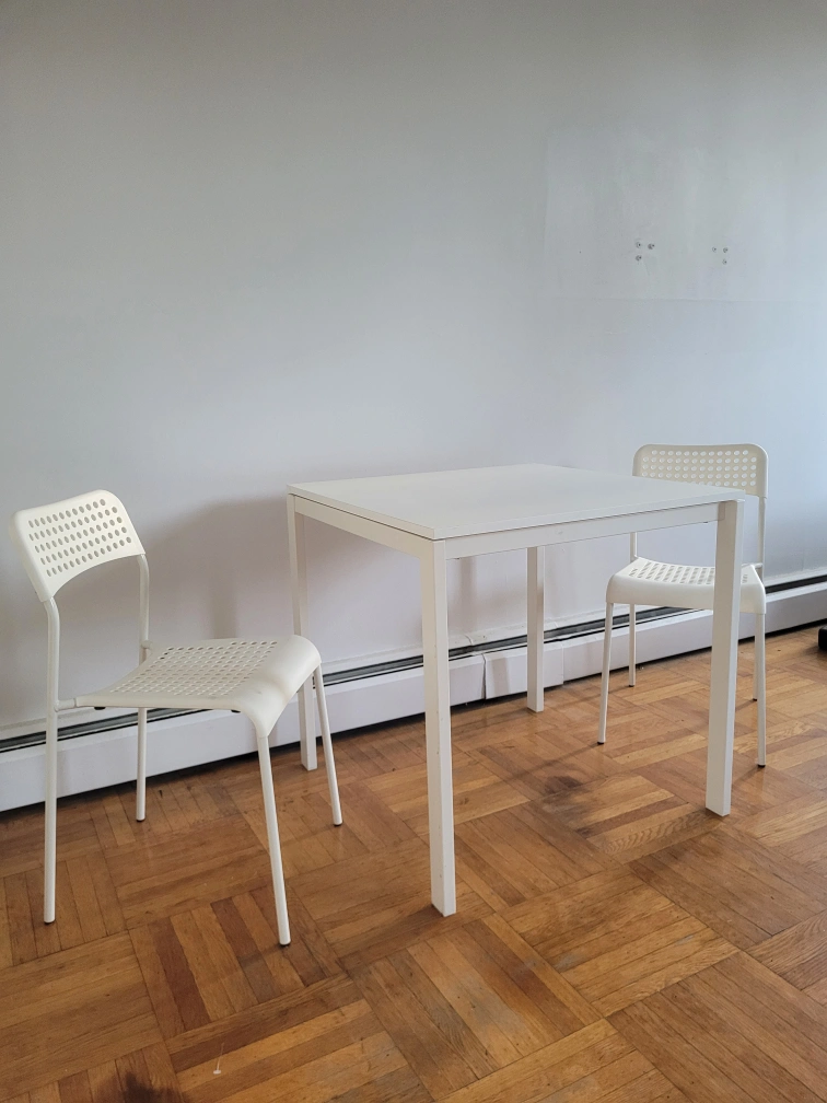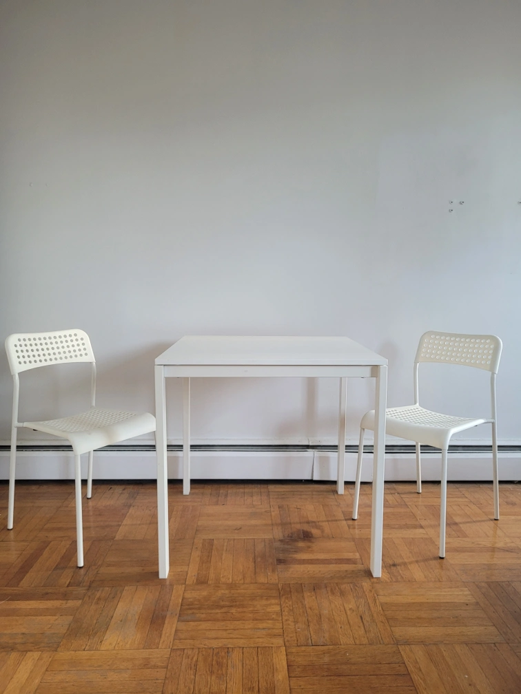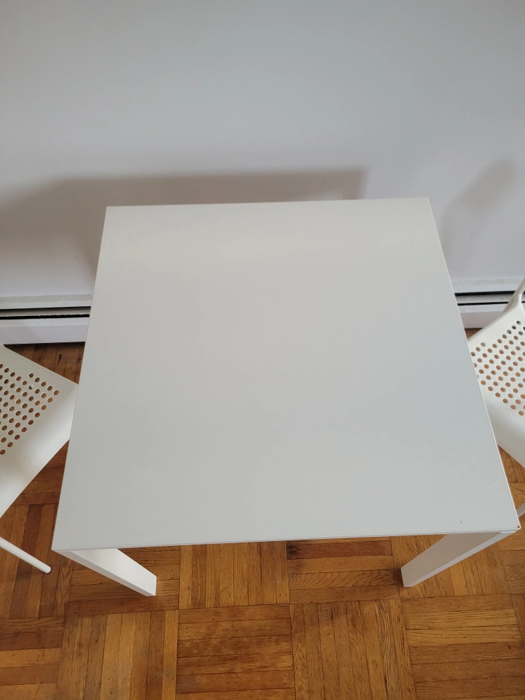Square Dining Table With 2 White Matching Chairs